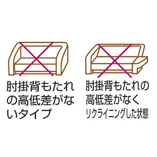 • 【対応不可能なソファ】肘掛背もたれの高低差がないタイプ・肘掛背もたれの高低差がなくリクライニングした状態