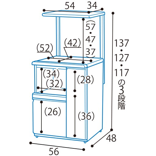 B(扉タイプ)※寸法の単位はcm、()は内寸です。※B(扉タイプ)には米びつはついていません。