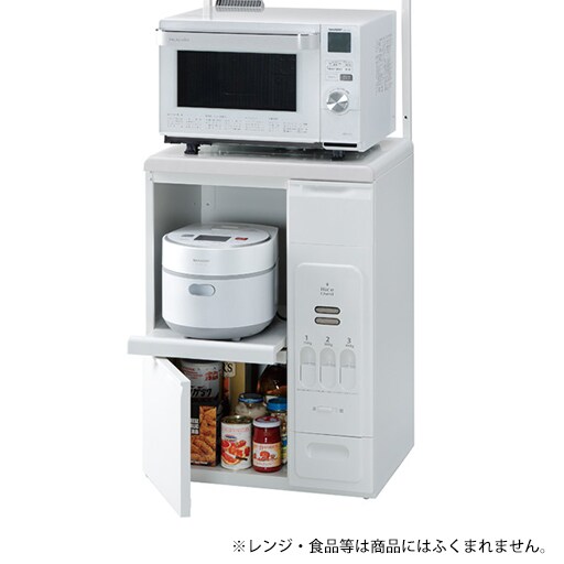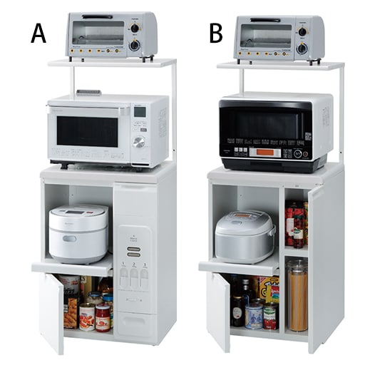 左:A(米びつタイプ)、右:B(扉タイプ)※B(扉タイプ)には米びつはついていません。※レンジ・炊飯器・食品等は商品には含まれません。