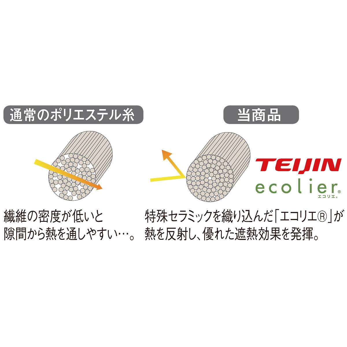 生地には高い遮熱・保温性を発揮する、高密度繊維「エコリエ®」を使用。夏は直射日光による温度上昇を抑えて、冬は冷気による温度低下を防ぎます。