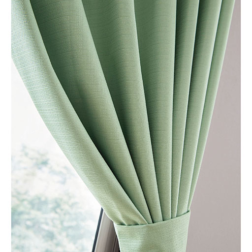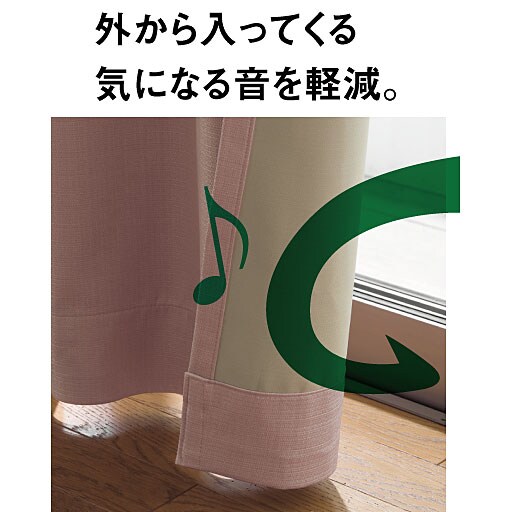 1級遮光・遮熱保温効果で朝日や西日がまぶしいお部屋や寝室にもおすすめ 裏面に施したアクリル樹脂コーティングで気になる音を軽減。ピアノや女性の声など高音域の方が効果を期待できます。 生地には高い遮熱・保温性を発揮する、高密度繊維「エコリエ®」を使用。 【遮光性について】1級から3級の等級があります。遮光1級に近づくにつれて遮光性が高くなります(遮光1級に近づくと光を通さない)。 オーダーカーテンはフックを支える芯地部分が長く、しっかりと立ち上がったヒダを保ちます。 美しいドレープをキープできる形状記憶加工つきで裾の広がりを抑え、開け閉めもスムーズ。 高級感のある芯地入りのタッセルを使用することでカーテンをすっきり束ねやすく、見た目の印象も美しく演出します。