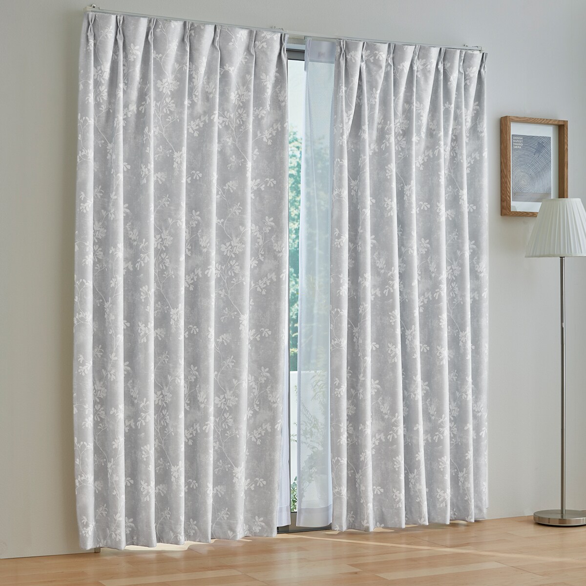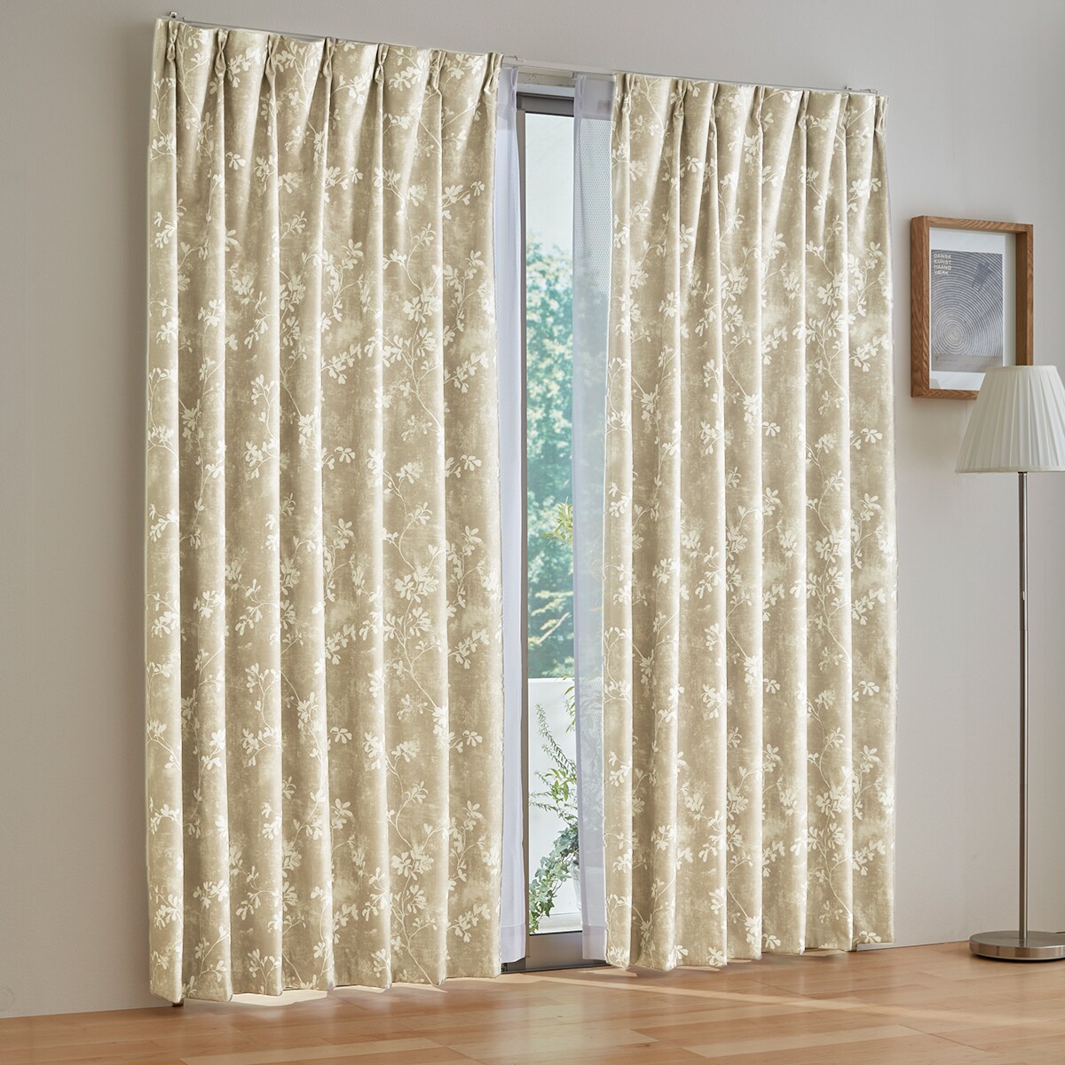 お部屋をシャビーシックな空間に演出。かすれタッチで風合いのあるリーフ柄が美しいカーテンです。裏面に施された4層のアクリル樹脂コーティングで、屋外の騒音はもちろん室内からの音漏れも軽減します。遮光率99.99%で朝日や西日を防ぎ、室内からの光漏れもガード。ぐっすり眠りたい方の寝室にもおすすめです。遮熱・保温効果にも優れているので、冷暖房効率アップも期待できます。★1cm単位でご注文できるオーダー商品です。使いやすさ・美しさにこだわったセシールのオーダー専用縫製仕様でお届けします。