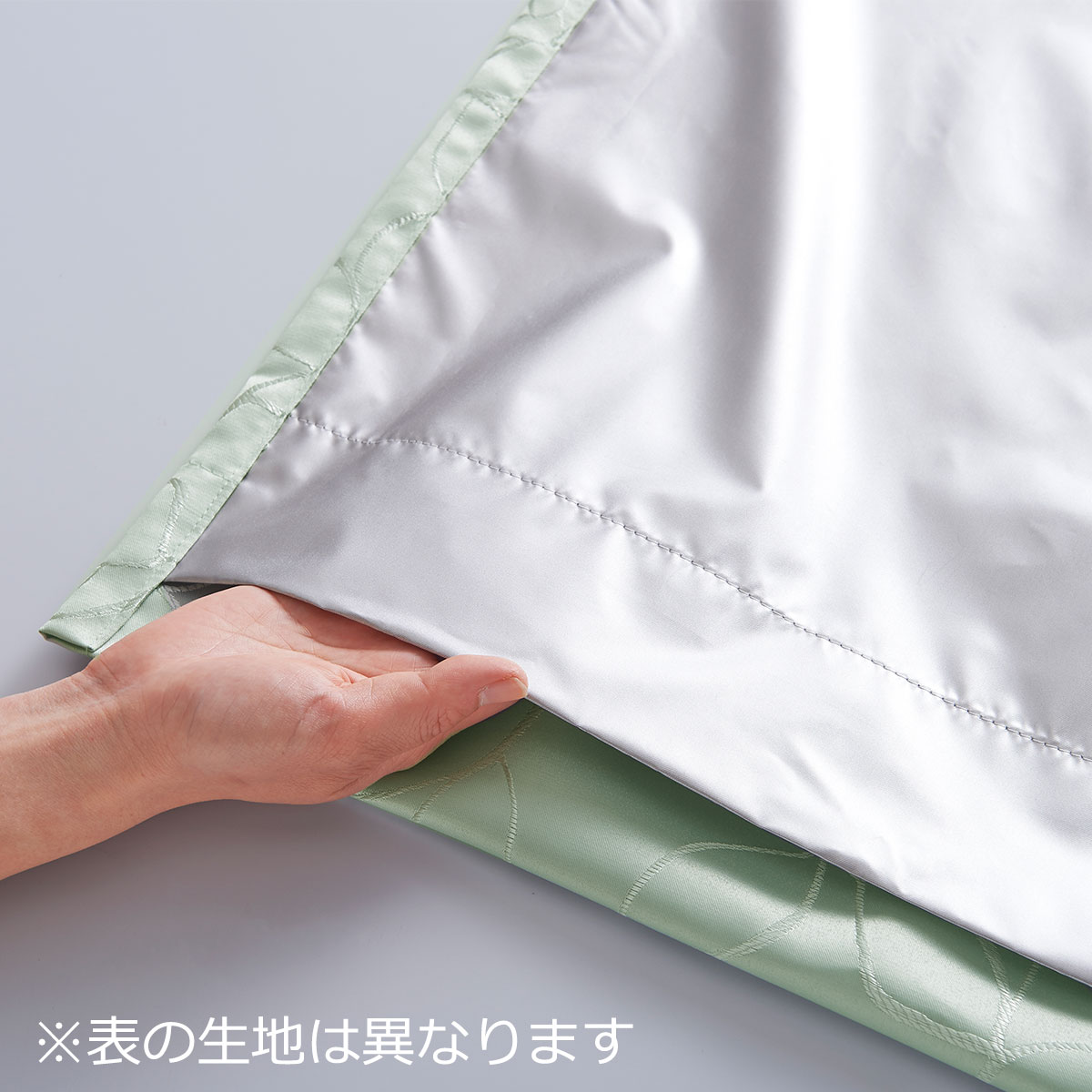 (左から) パウダーグリーン・アイボリー1級遮光裏地付きで気になる光もしっかりカット。