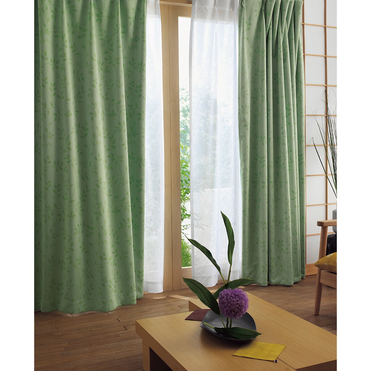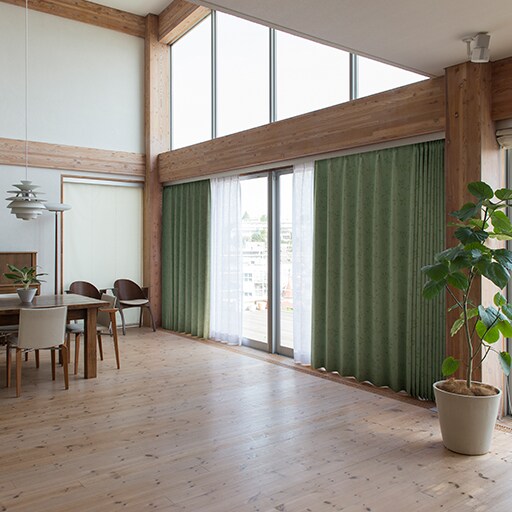 グリーン ※レースカーテンはVP-502を使用しています。和室にも合わせやすい。