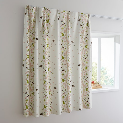 【オーダー】【ネット限定】〔形状記憶加工付き〕森に集まるリスや鳥たちを北欧風に表現した、とっても可愛いプリントカーテンです。お部屋が暗くなりすぎず、ほどよく光をやわらげます。1cm単位でご注文できるオーダー商品です。