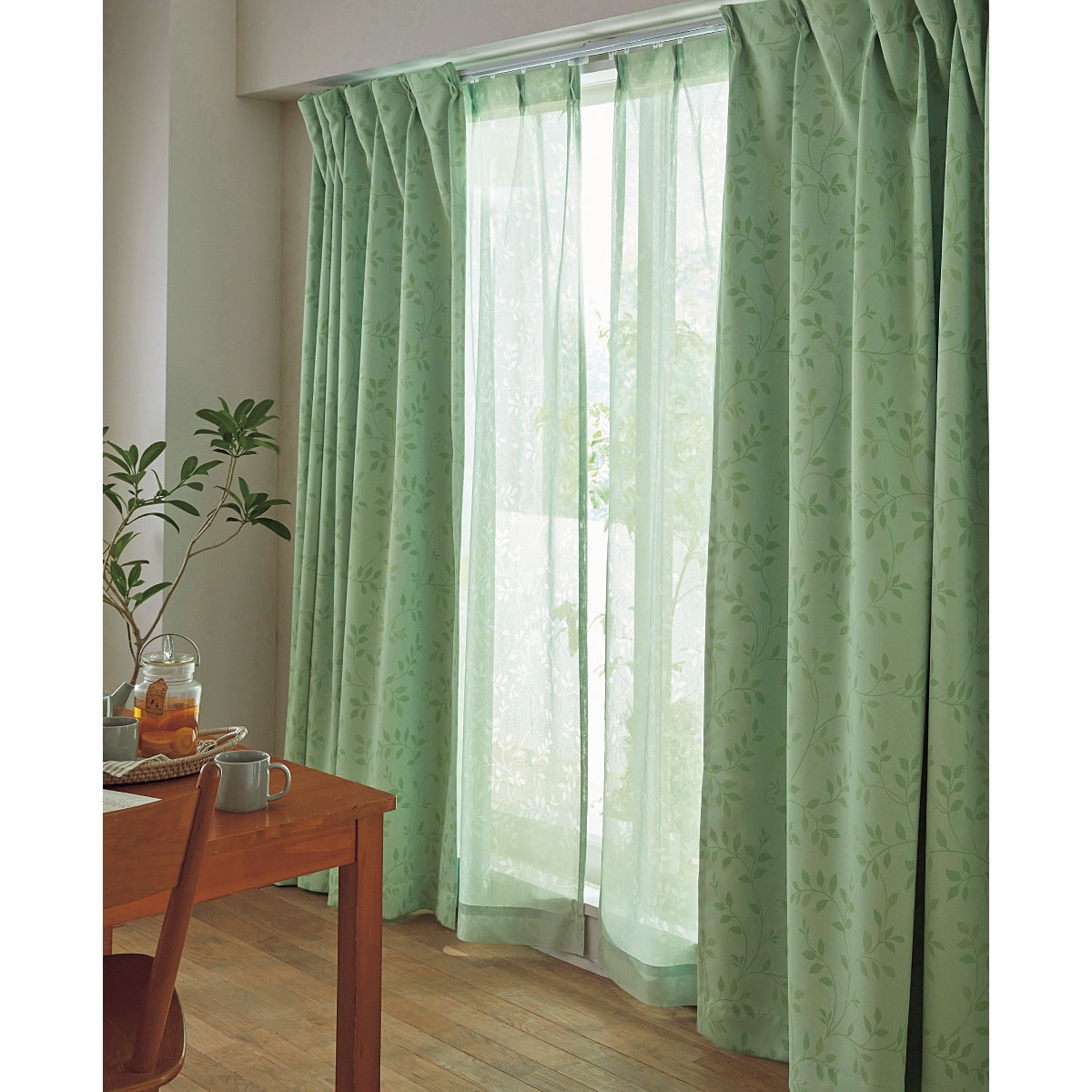 グリーン※商品はレースカーテンです。カーテンはVP-501を使用しています。