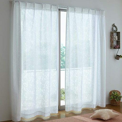 洋室にも和室にも合わせやすい、ナチュラルな雰囲気のリーフ柄プリントがおしゃれなミラーレースカーテンです。ほどよく光を通しつつ昼間の外からの視線を遮り、プライバシーを守ります。さらにUVカット・防炎機能付きなので、お部屋の日焼け防止対策や高層マンションにお住まいの方にもおすすめ。日本で丁寧に縫製し仕上げた国産仕様です。★1cm単位でご注文できるオーダー商品です。使いやすさ・美しさにこだわったセシールのオーダー専用縫製仕様でお届けします。