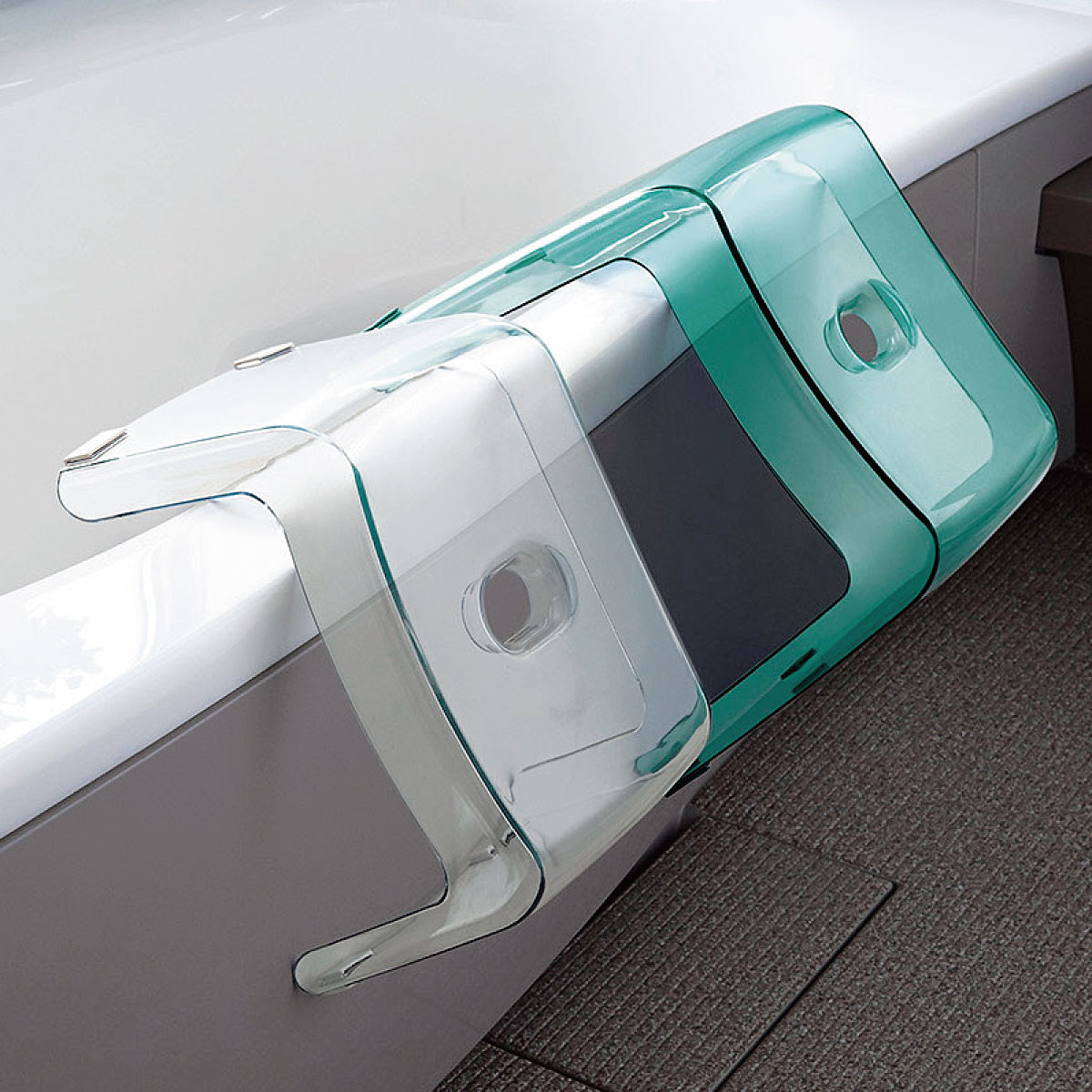 すっきりと清潔感のある使い心地が人気のバスグッズシリーズ。凹凸が少ないので水切れが良く、カラリと乾きやすいのが特徴です。軽くて持ち運びがしやすく、お手入れも楽々。透明感のあるシンプルなデザインで清潔感あふれるバスルームに。