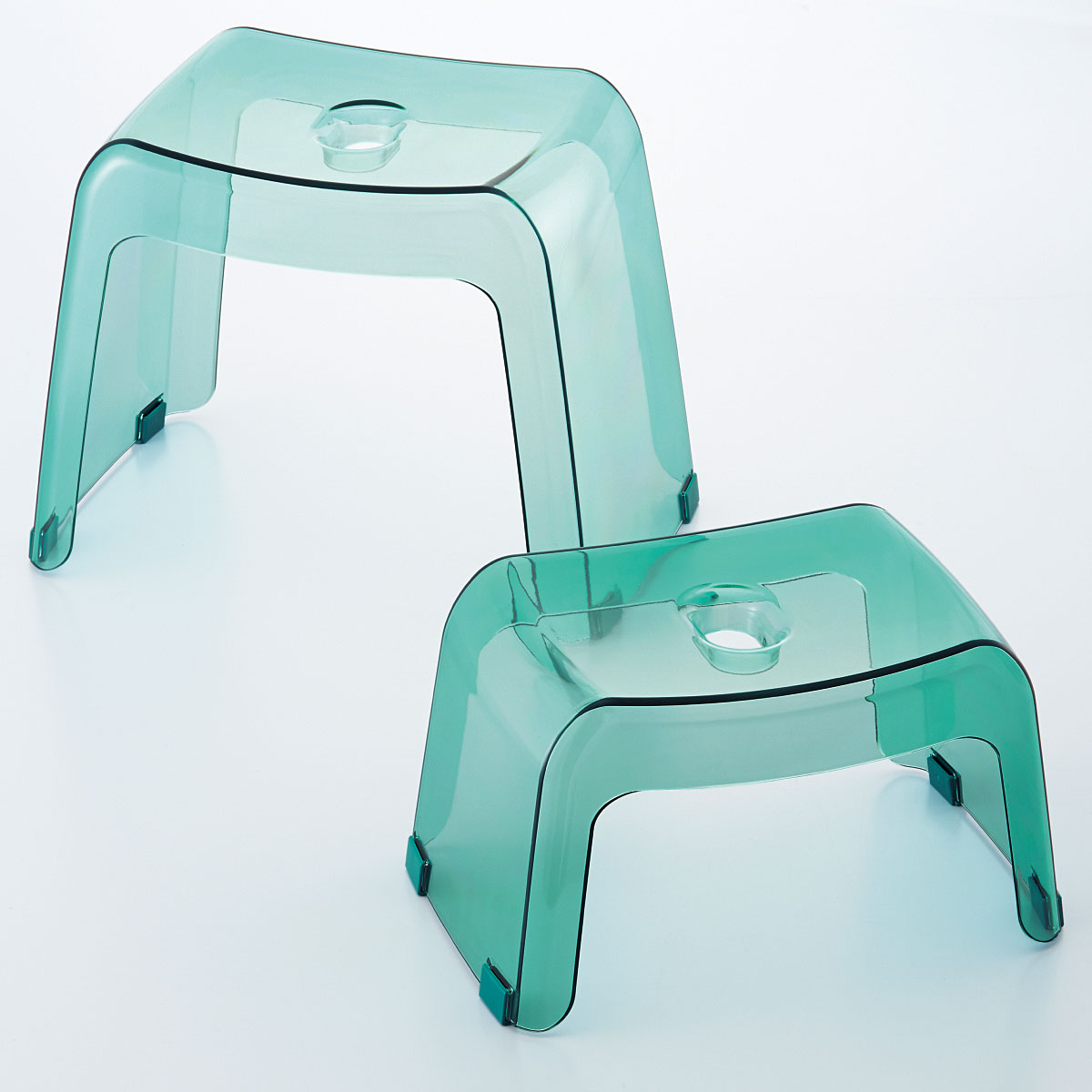 左:ナチュラル (高さ20cm)、右:アクアブルー (高さ30cm)カラリと渇くからいつも清潔キープ。