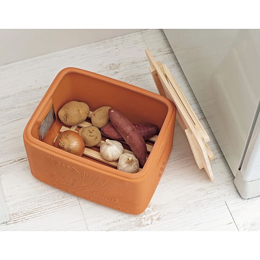 素焼きのテラコッタの質感が楽しめる、野菜保管庫です。風通しがよく湿気も防いで、根菜の鮮度をキープ!常滑焼きの職人が、ひとつずつ丁寧に仕上げています。