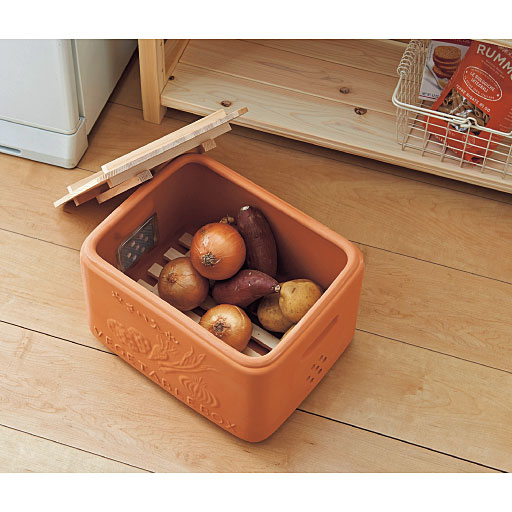 調湿性にすぐれた素焼きのベジタブルボックスです。