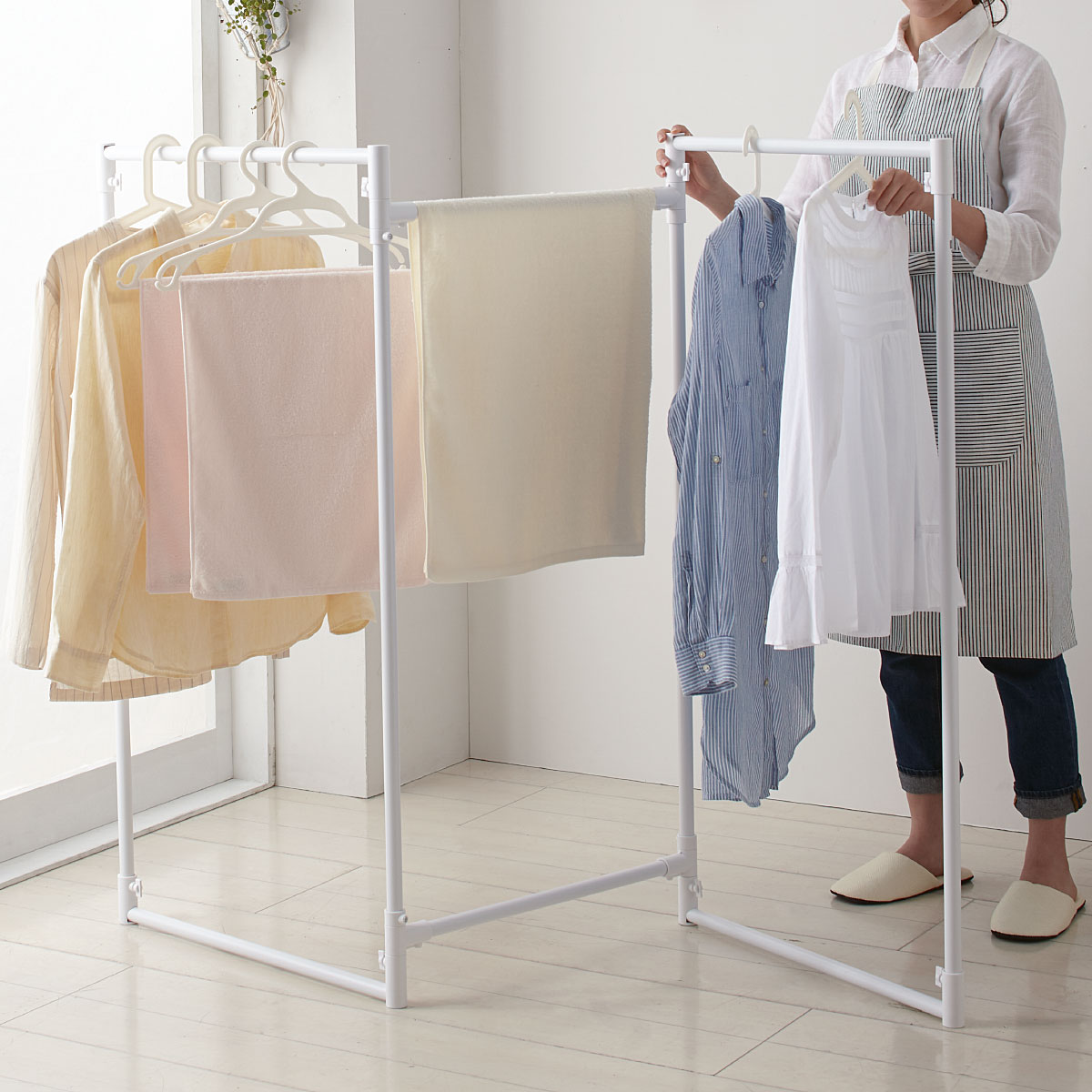 アイボリー/C(Z型ロング)大容量の部屋干しもお任せ!ワンピースやアウターなど丈の長いものも干せます。