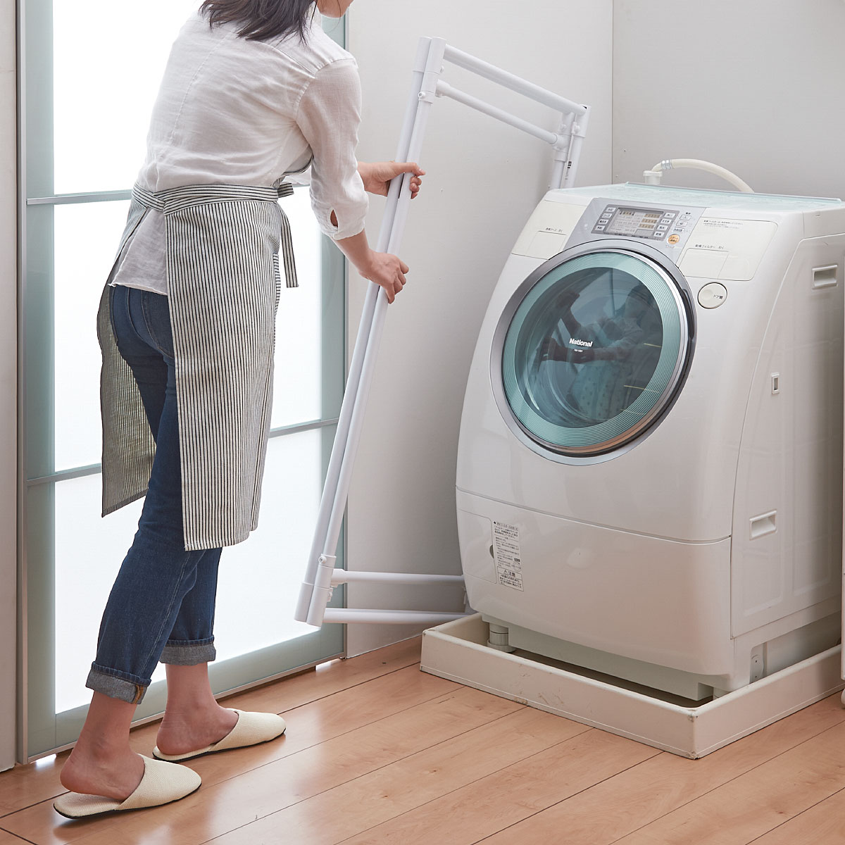 コンパクトなスペースから大容量まで、目的や使用場所によって使い分けられる室内物干し。Z型や三角型など、用途に応じて変形させて使用できます。シンプルなホワイトカラーも嬉しい!折りたたみ時は約6cmの薄さなので、すき間に収納できます。