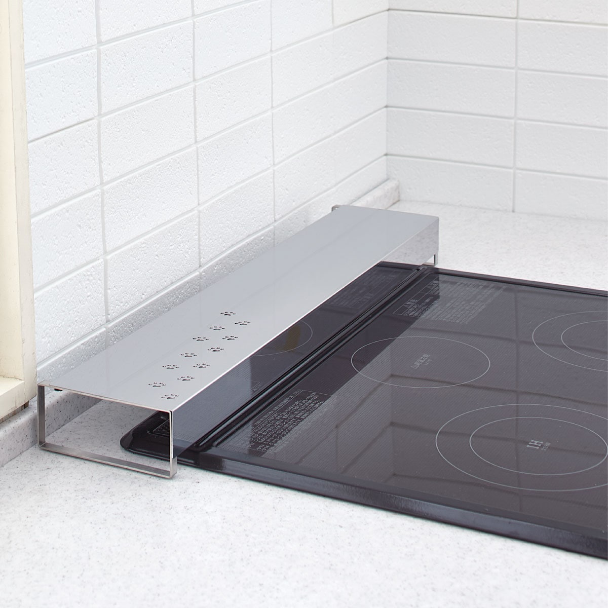 ■[本体]ステンレス鋼 [脚ゴム]シリコーンゴム ■サイズ(約cm)/[A]幅66×奥行14×高さ6.5 [B]幅78×奥行14×高さ6.5 ■重量(約kg)/[A]0.87 [B]1 ■耐荷重/約15kg(A・B共通) ■適応サイズ(約cm)/[コンロ幅]A:63以下 B:75以下 [コンロ高さ]A・B共通:1.5以下 [排気口グリル高さ]A・B共通:5以下 ■IHクッキングヒーター及びガスコンロのビルトインタイプ専用 ※魚焼きグリルを使用する場合はコンロから本品を取り外すか、排気口からの熱風を妨げない位置に立ててください。※3口コンロの場合は奥側のコンロを使用するとぶつかる場合がありますので移動してください。●日本製【完成品】 【小型別配送】 【ステンレス】※沖縄県や一部島しょ部など配送上の都合によりお届けできない地域がございます。