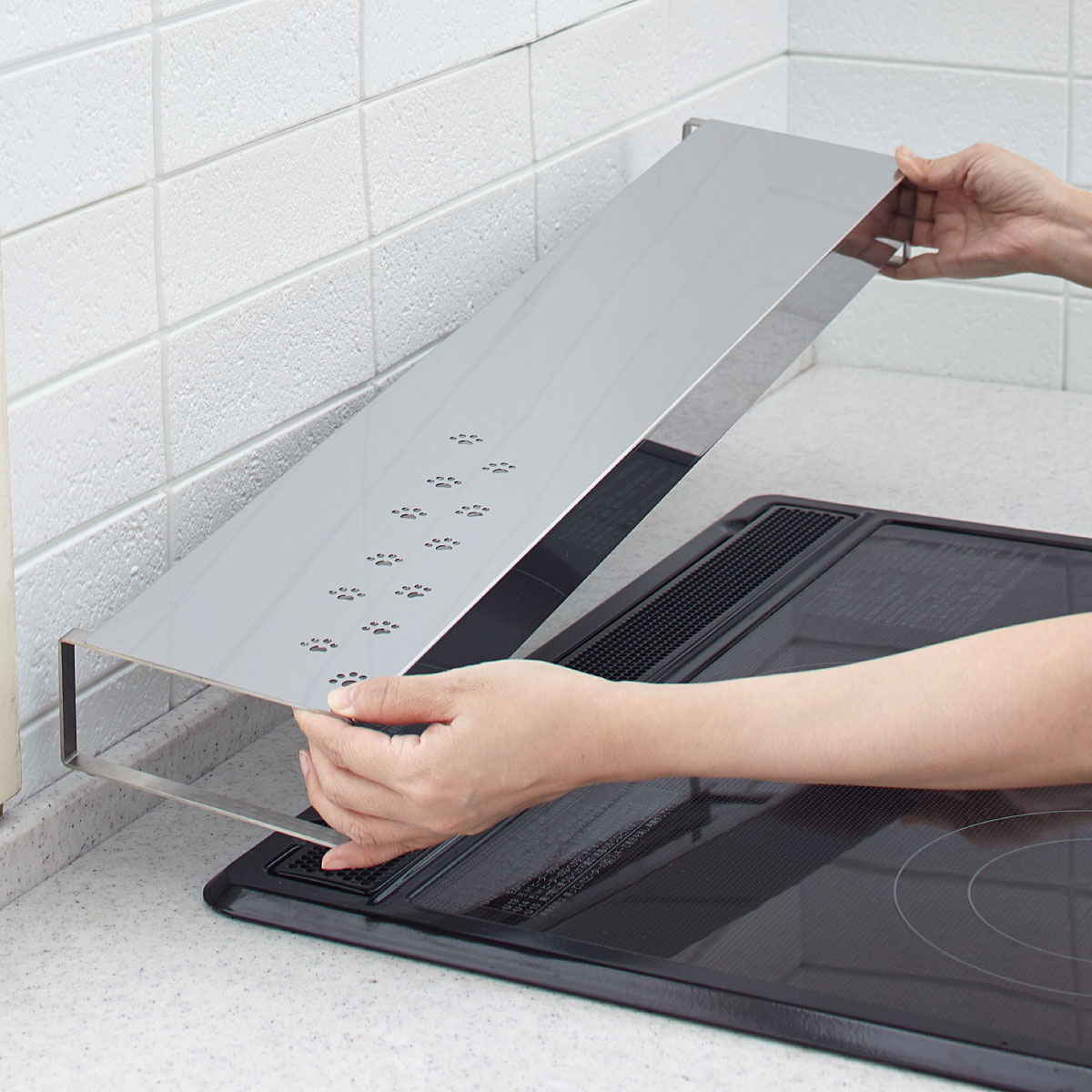 グリルの排気口を汚れから守ります。サビに強く耐熱・耐久性の高いステンレス製ラックなので、熱い鍋やフライパンもそのまま置けます。肉球の抜き型デザインがアナタの遊び心を刺激し、きっと見るたびに愛着がわいてきます!
