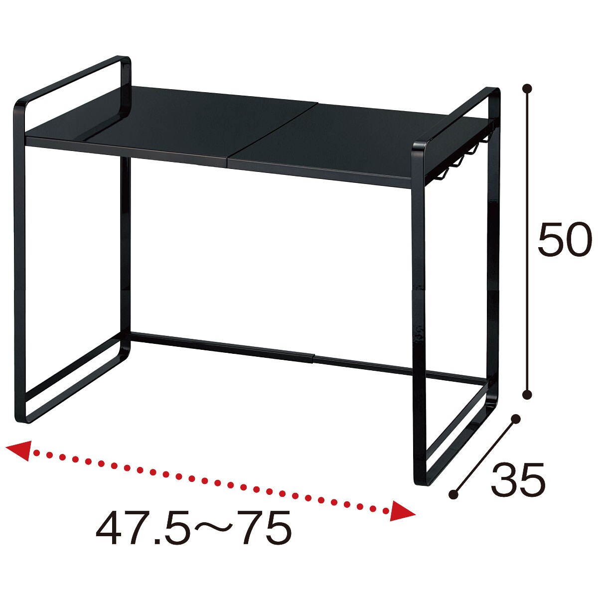 ■[本体・棚]スチール(粉体塗装) ■サイズ(約cm)/[本体]47.5~75×35×50 [有効内寸]幅44~71×奥行33×高さ44 [伸縮可能範囲]27 ■重量/約4.6kg ■耐荷重/[棚]約12kg [フック]各500g●中国製【小型別配送】 【組立式20分】 ※沖縄県や一部島しょ部など配送上の都合によりお届けできない地域がございます。