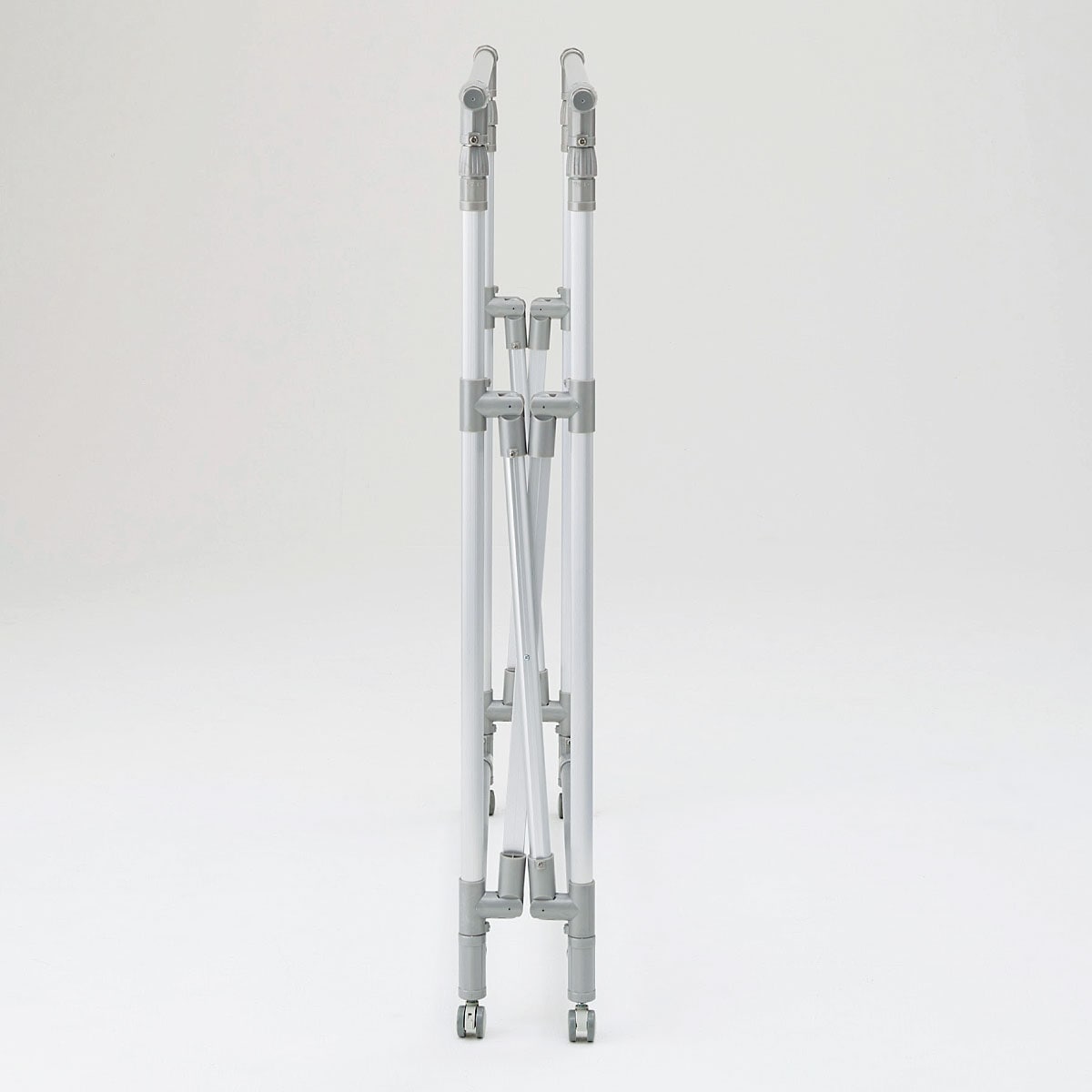 ■アルミ合金パイプ、ABS樹脂 ■サイズ(約cm)/幅121~204×奥行46(収納時:18)×高さ127~162 ■重量/約4.5kg ■耐荷重/約20kg●日本製【小型別配送】 【組立式15分】※沖縄県や一部島しょ部など配送上の都合によりお届けできない地域がございます。