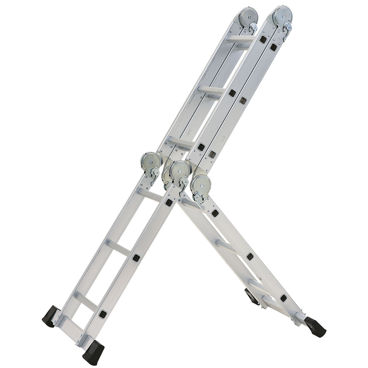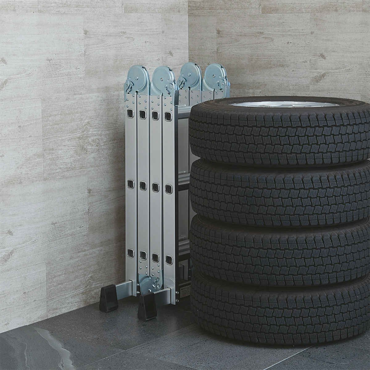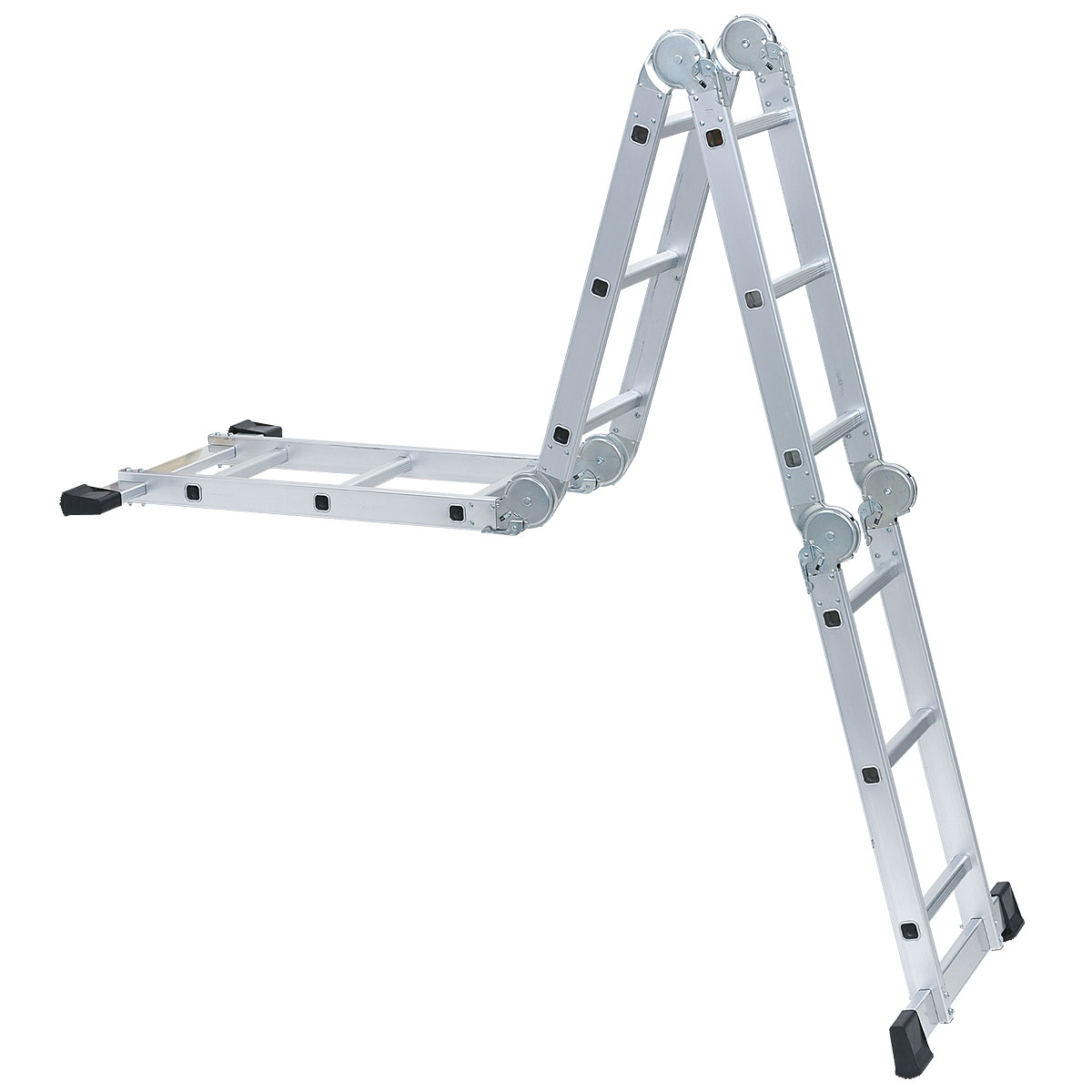8つの形状に変形するから、屋内外を問わず家事や掃除、洗車やDIYなど様々な作業が楽になります。本体はアルミ製、着脱可能な作業台付きで作業がさらに捗ります。ロック機能やステップ板など、安全面にも考慮しているので、女性でも扱えます。使わないときはコンパクトに収納できます。