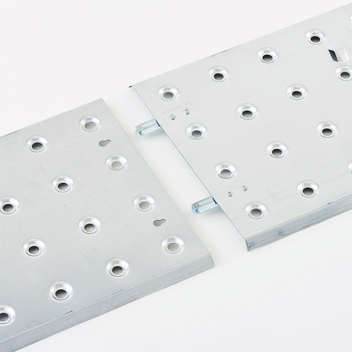 2枚の足場プレートはズレにくい連結式