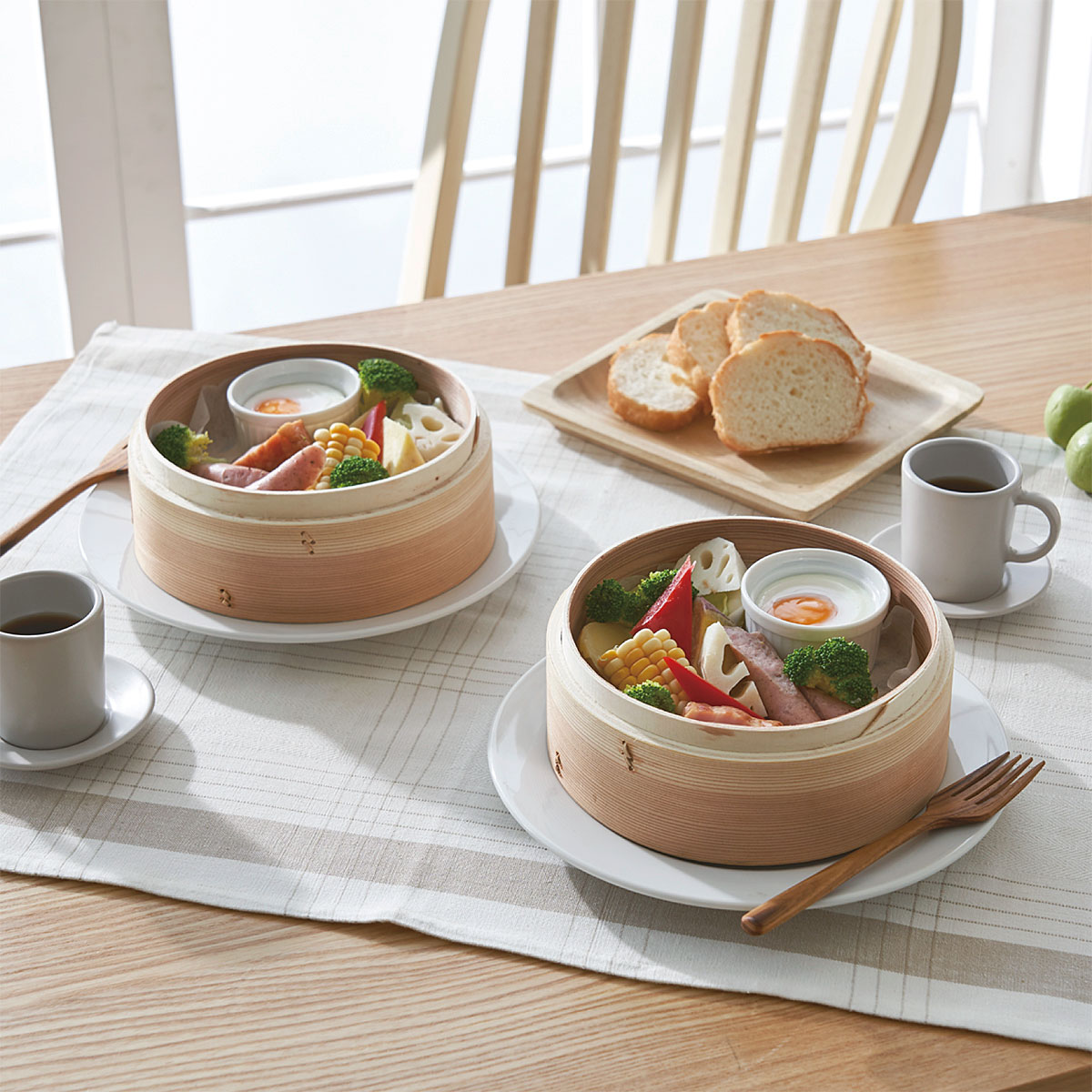 直径18cmのコンパクトサイズのせいろは、2段重ねて同時に調理することができます。上で蒸し野菜、下で茶碗蒸しなど2品一気に作れるので時短につながります。