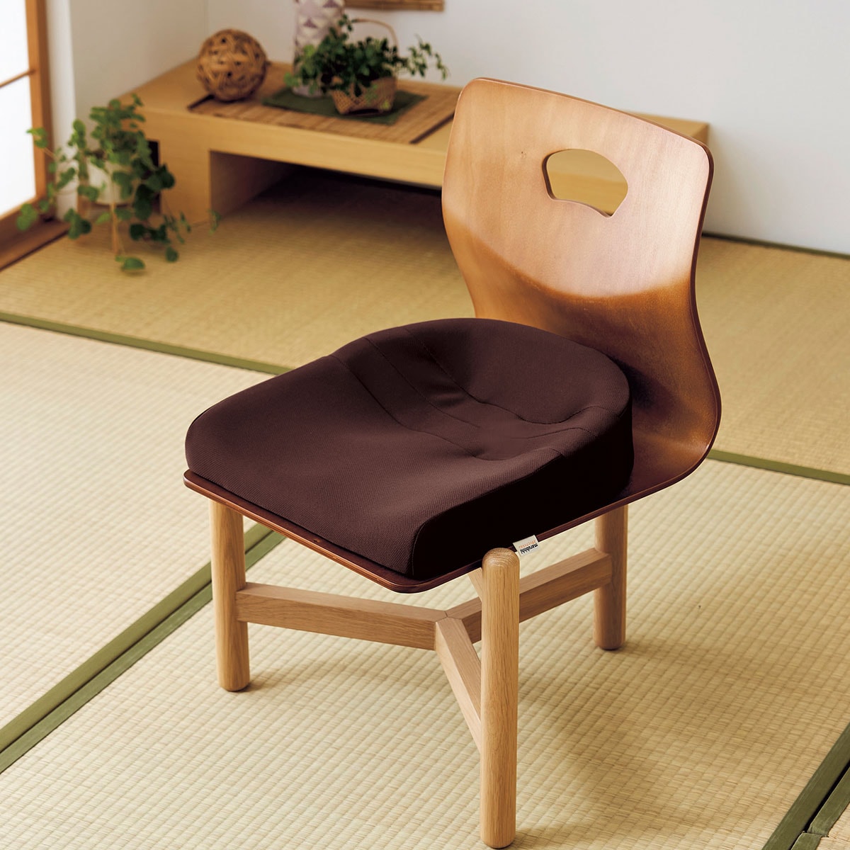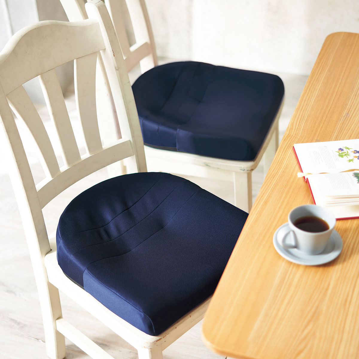 創業以来、安全性と快適性を兼ね備えた自動車用シートを製造してきたメーカーが、長年培った知見と技術を生かし、人間工学に基づいて座り心地を追求したクッションを作りました。お尻を全体的に支えることによって、座骨周りに集中する圧力を分散し負担を軽減。長時間座っても疲れにくい優しいフィット感を実現しました。お尻がきちんとはまり、座る位置が決まるので、骨盤が後ろに傾きにくく、前滑りも軽減。汗を吸って素早く拡散する特殊素材を使用しているので、長時間座ってもムレにくく、日常の「座る」動作を幸せにしてくれるクッションです。
