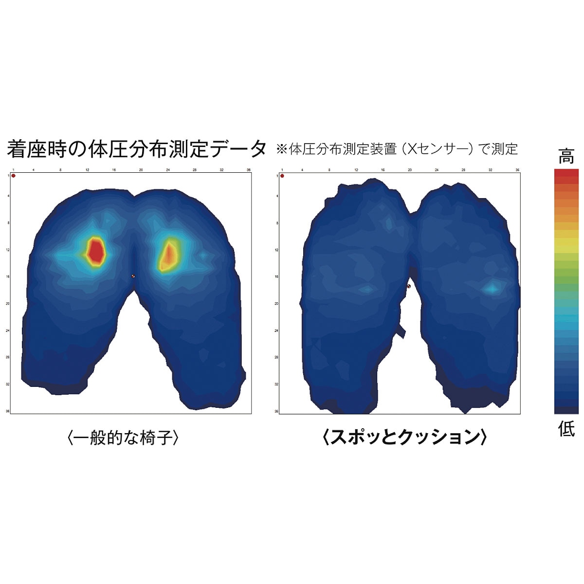 全面で臀部(お尻)を支えることができるので、体圧が分散し、点ではなく面で座れます。臀部(お尻)がはまり、座る位置が決まるので、前すべりや過度の骨盤の後傾が防げます。