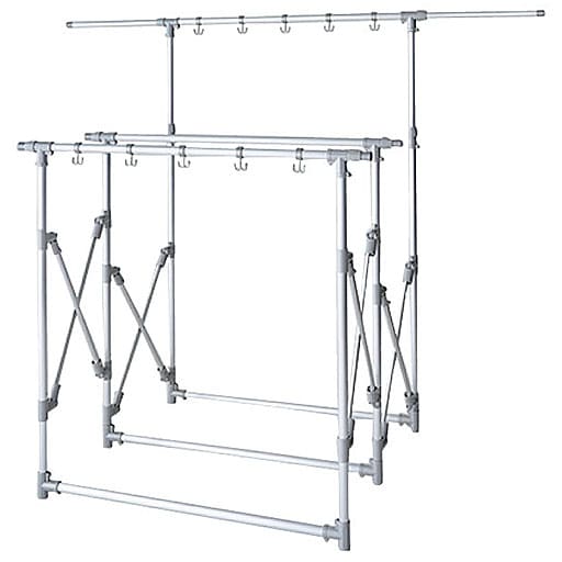 ■[本体]アルミ合金パイプ [ジョイント]ABS樹脂 ■サイズ(約cm)/A:幅124~208×奥行18~53×高さ120/129~170 B:幅124~208×奥行33~100×高さ120/129~170 ■重量(約kg)/A:4 B:6.4 ■耐荷重(約kg)/A:20 B:30※沖縄県や一部島しょ部など配送上の都合によりお届けできない地域がございます。●日本製【大型別配送】(Aは小型)【組立式(2人で)約15分程度】