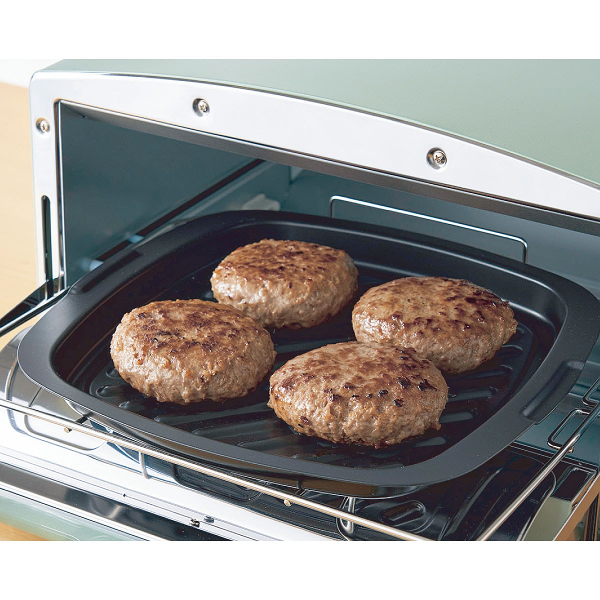 付属のグリルパンを使うことで、焼く、煮る、蒸す、炊く、温め、オーブン料理や油を使用しないヘルシー料理など多彩な調理も可能。