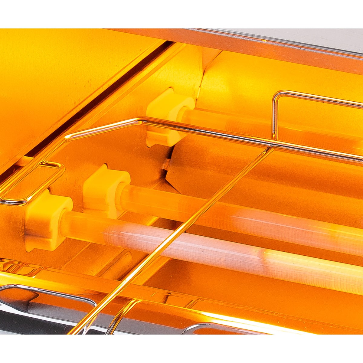 • 「遠赤グラファイト」がわずか0.2秒で発熱し、庫内温度を高くします。短時間かつ高温で一気に焼き上げることで、食パンの水分が中に保持された状態になり、外はカリッと、中は水分が残っているのでモチモチとしたトーストを焼き上げることができます。