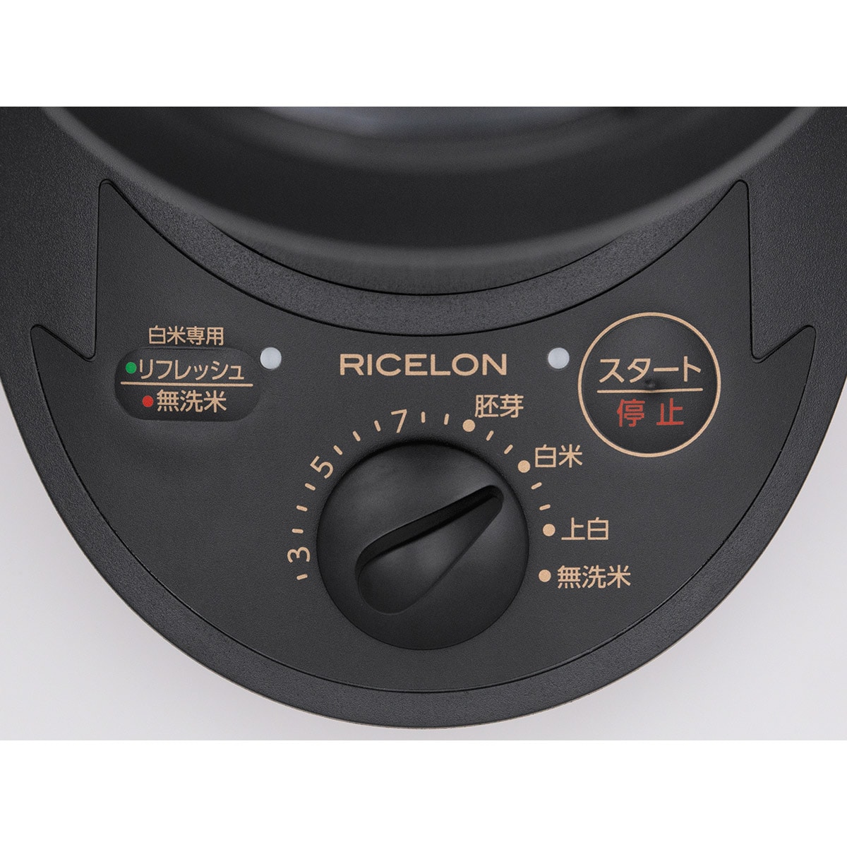 大きさは2Lペットボトルほどで置き場に困らないコンパクトサイズです。割れ米は食味を低下させる原因といわれています。ライスロンは凹凸のない精米バスケットと特殊形状の精米羽根が滑らかな対流を生み出し、割れ米が極めて少ない精米を実現しています。12段階の分づきコースをはじめ、胚芽、白米、上白、無洗米コースまで。自分好みのお米に仕上げることができます。また、お米の量を自動認識するため、精米量の設定が必要ありません。
