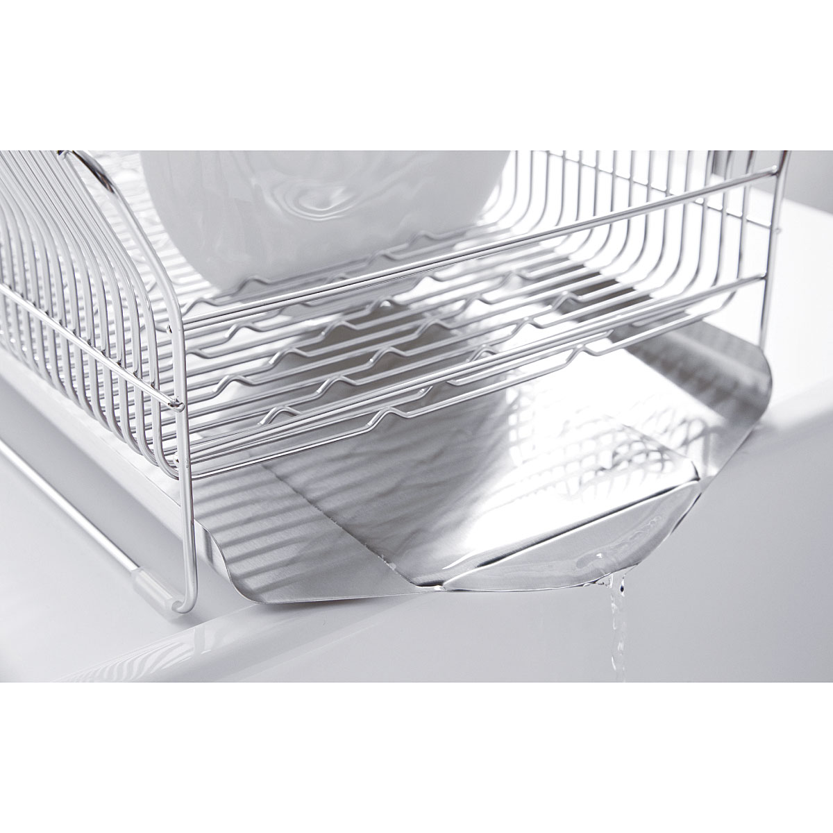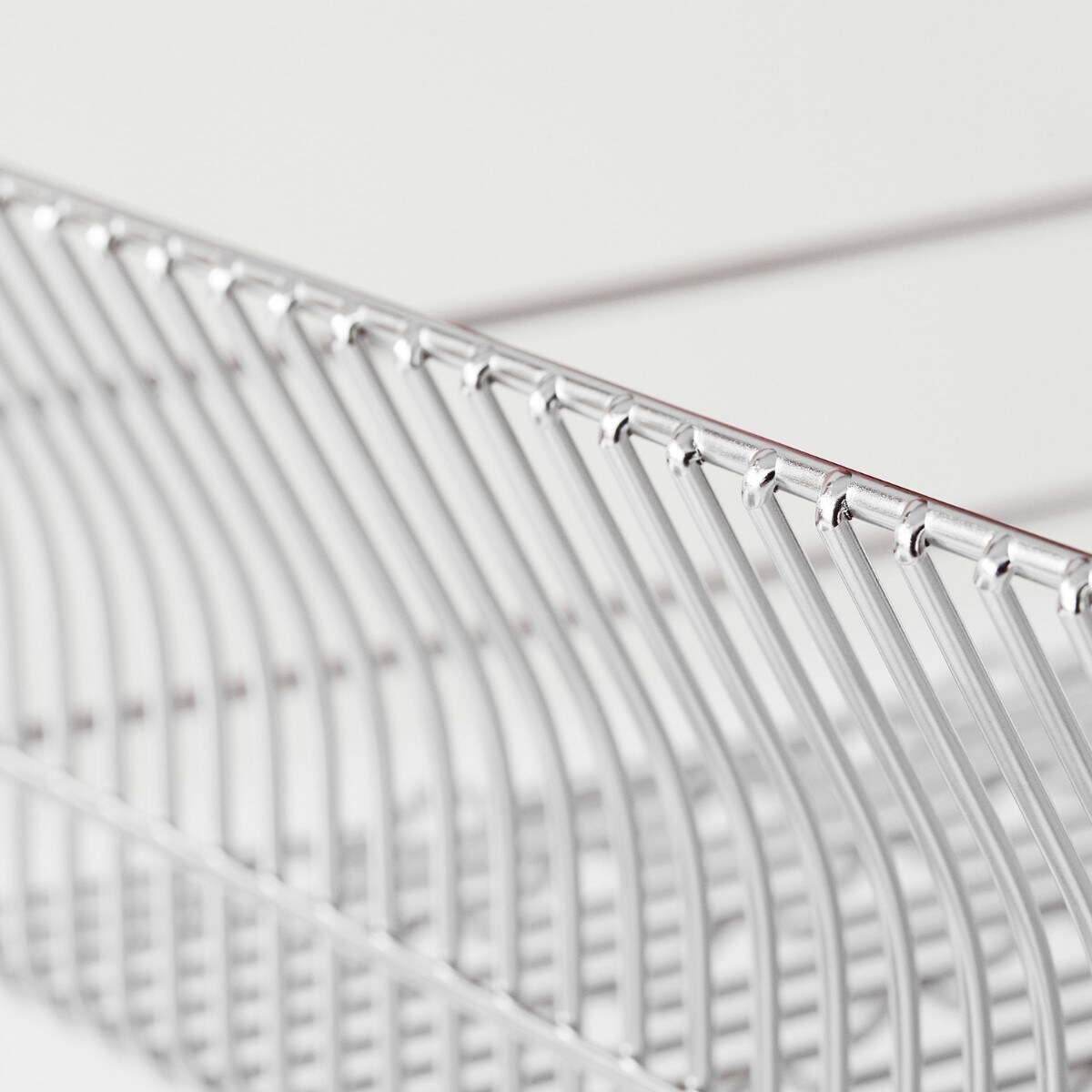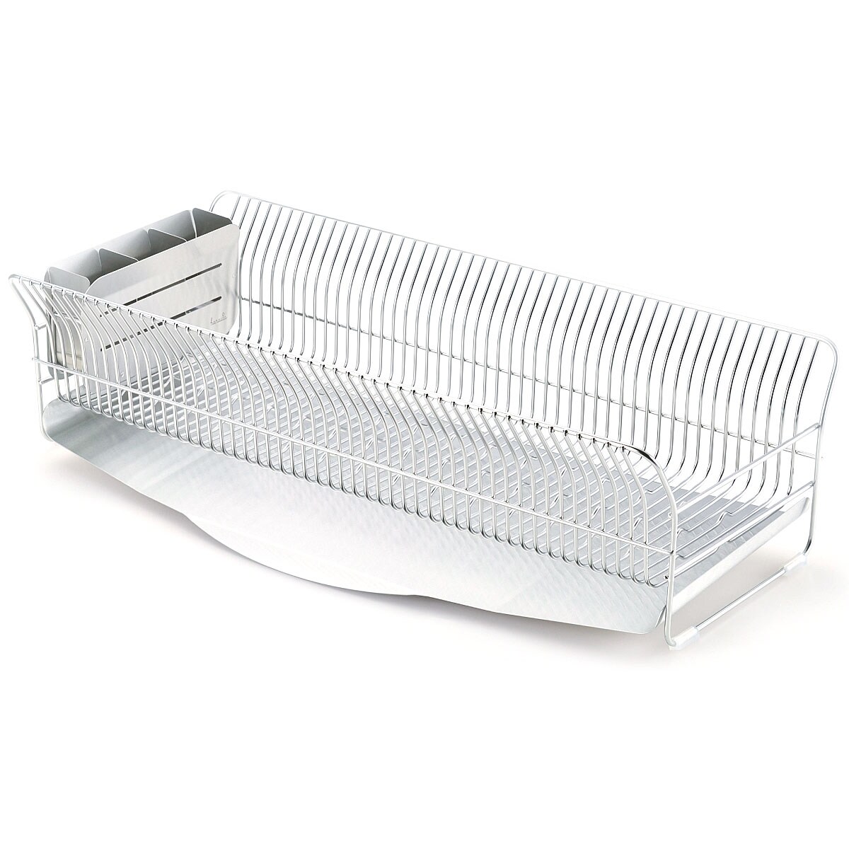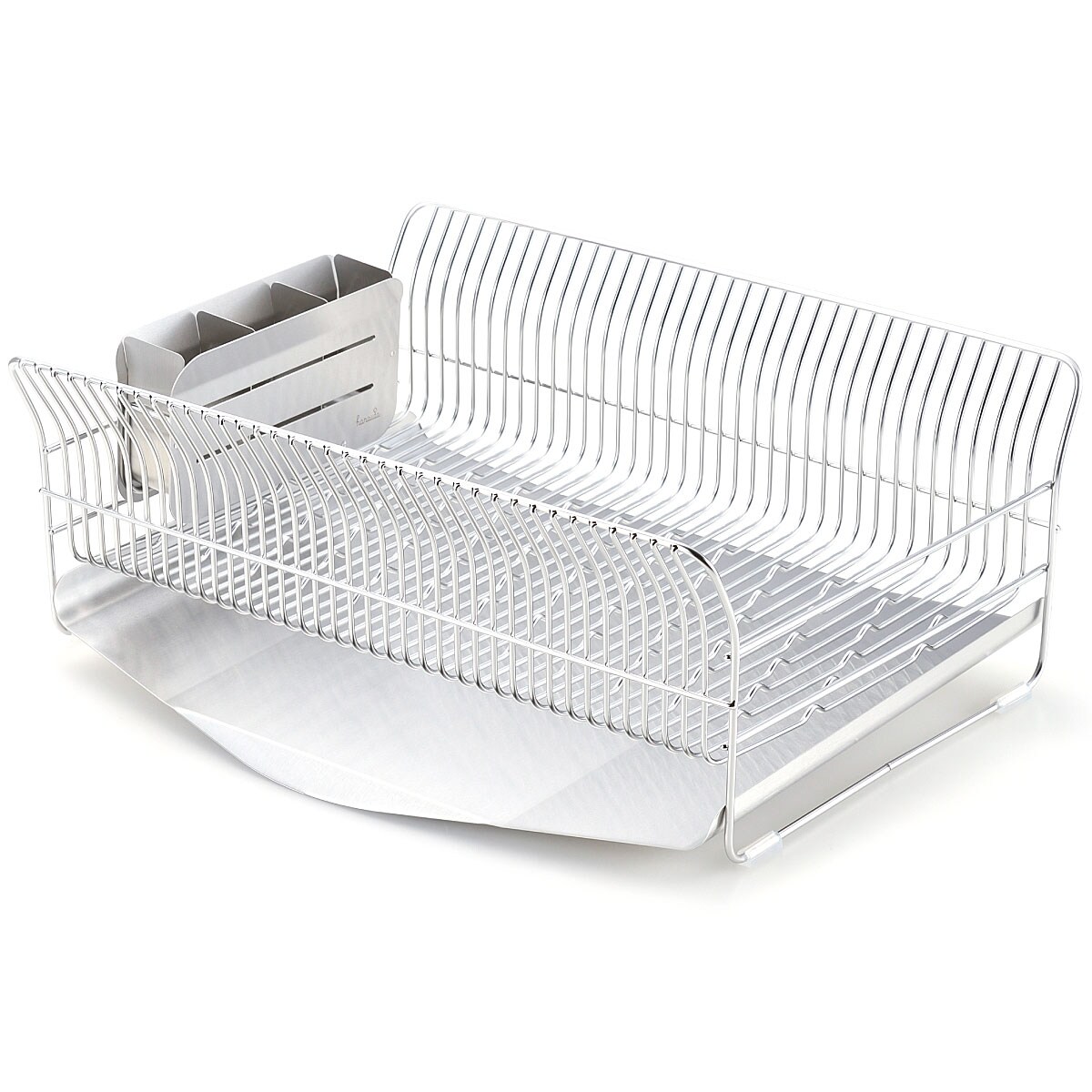 太めの線材を細かい間隔で配し、縦横自在にお皿が立つよう底面に波型の加工を施しているので、水で濡れた手でもお皿が置きやすく、滑りにくい機能的な形状。大きなお皿もサイドのカーブでやさしく支えます。付属の箸立てがリニューアルし、さらに使いやすくなりました。
