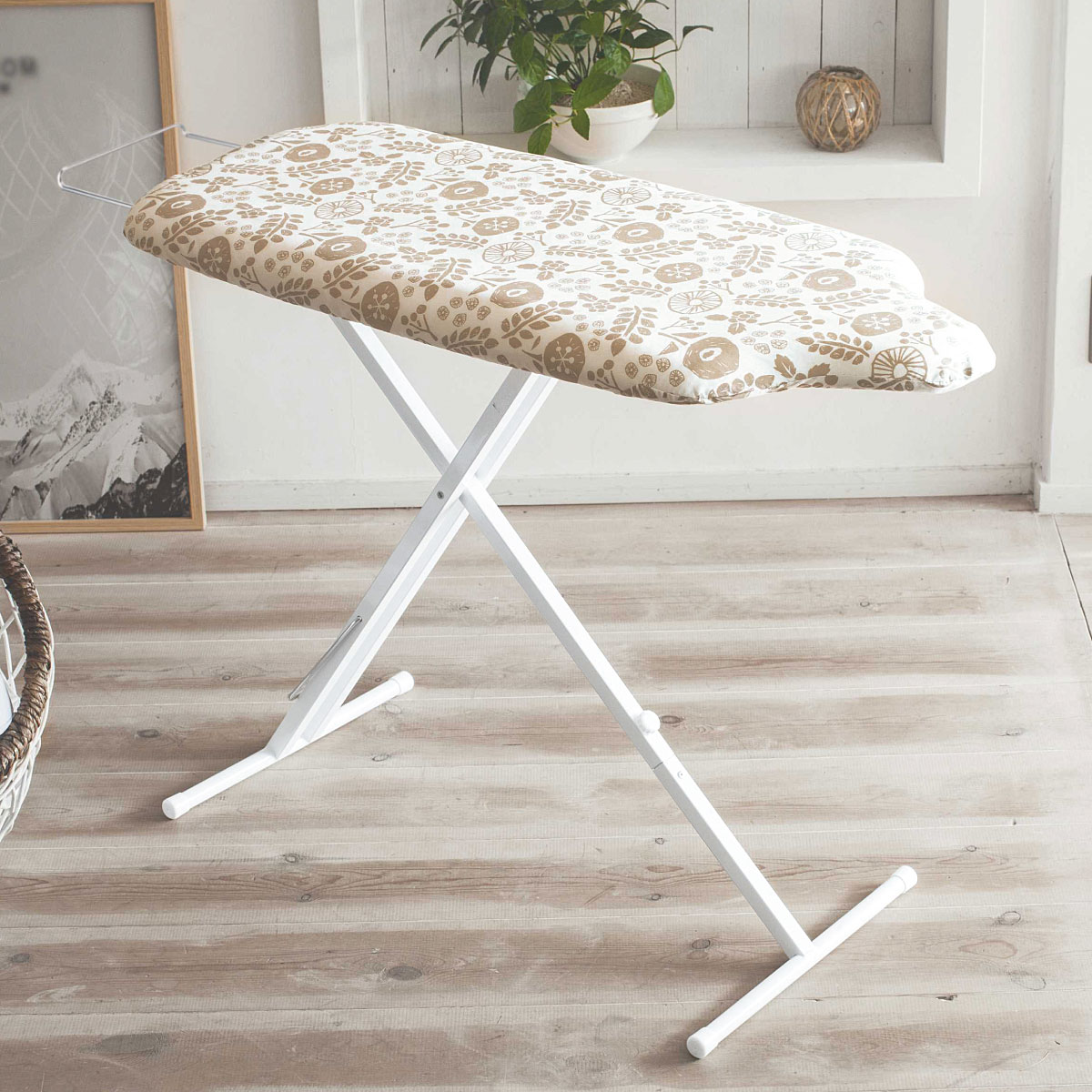 便利なアイロン置き場も付いています。使わない時はスッキリ収納できるスライド式です