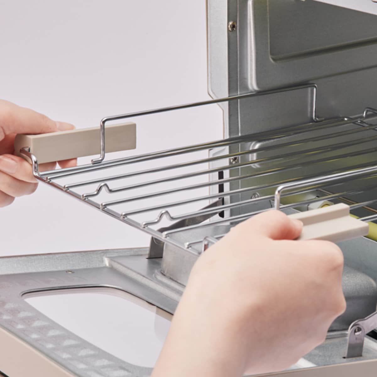 可愛いだけじゃない!便利な機能も盛りだくさん♪〇ラックに持ち手熱々のラックを取る時、面倒な経験や熱い経験したことがありませんか?ラックに持ち手が付いており、熱々の料理をそのまま取り出すことができます☆料理を具材ラックの上で完成させてからトースターへそのまま入れることができます♪〇6つの調理モード・トーストモード・冷凍トーストモード・デリモード・冷凍リベイクモード・180℃モード・220℃モード食べきれないパンは冷凍し保存しても、焼き上がりおいしく仕上げます♪