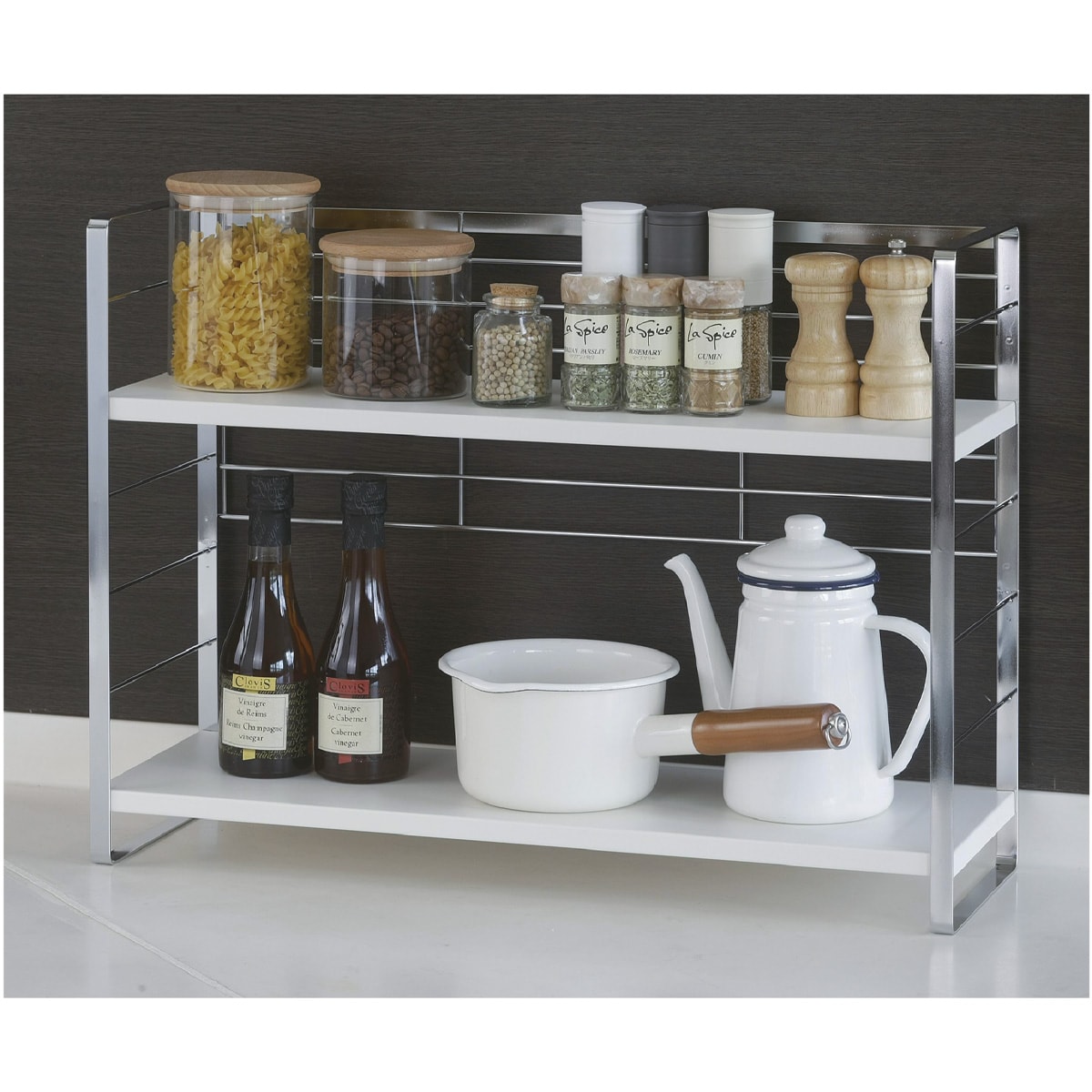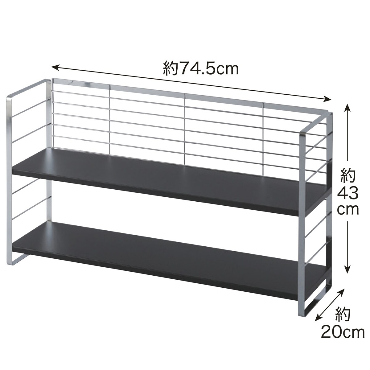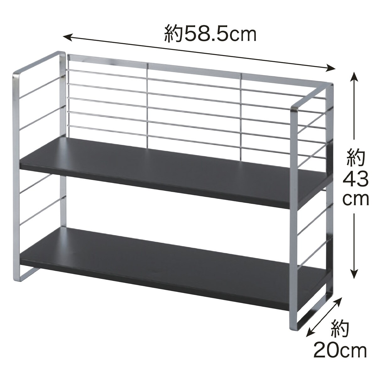 ■[棚板]スチール(ポリエステル樹脂粉体塗装) [フレーム・バックネット] スチール(クロムメッキ) [クッションゴム]シリコーンゴム ■サイズ(約cm)/[幅58cm]幅58.5×奥行20×高さ43、棚板:幅58×奥行19×高さ1.5、棚間:6.5(6段階調節可)、脚内寸幅55.5、床から最下段セット時すき間4 [幅74cm]幅74.5×奥行20×高さ43、棚板:幅74×奥行19×高さ1.5、棚間6.5(6段階調節可)、脚内寸幅71.5、床から最下段セット時すき間4 ■重量/[幅58cm]約3kg [幅74cm]約4.7kg ■耐荷重/1段あたり約10kg●日本製【小型別配送】※沖縄県や一部島しょ部など配送上の都合によりお届けできない地域がございます。