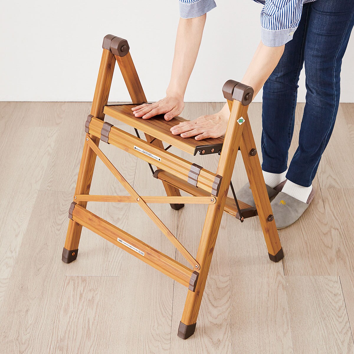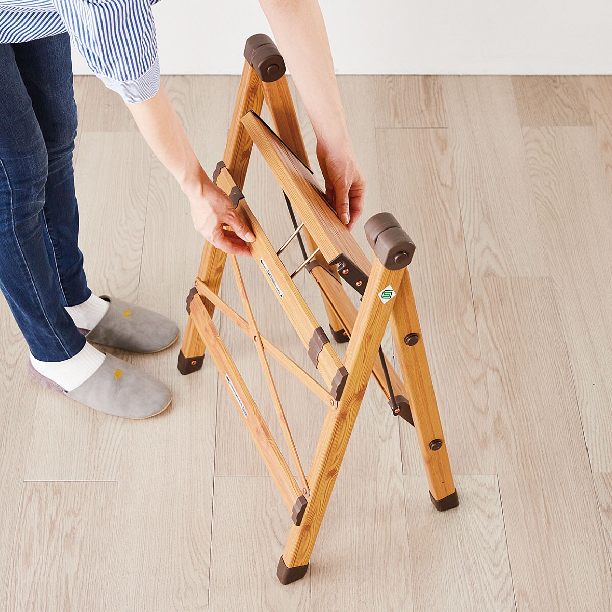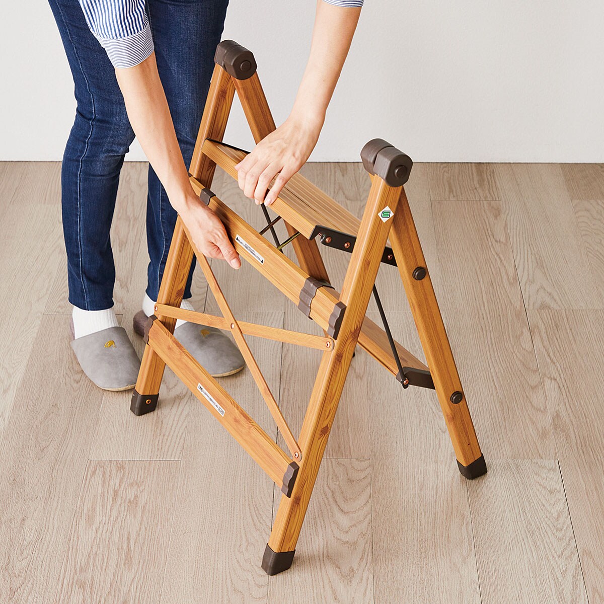 木目調でインテリア性抜群。薄くおりたためる脚立!