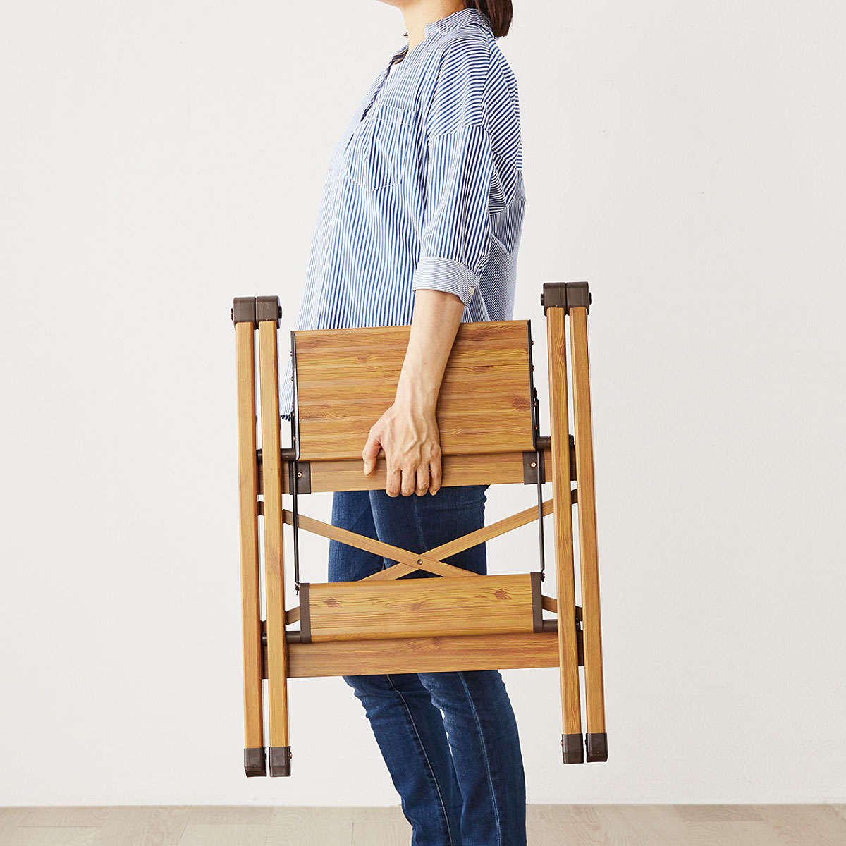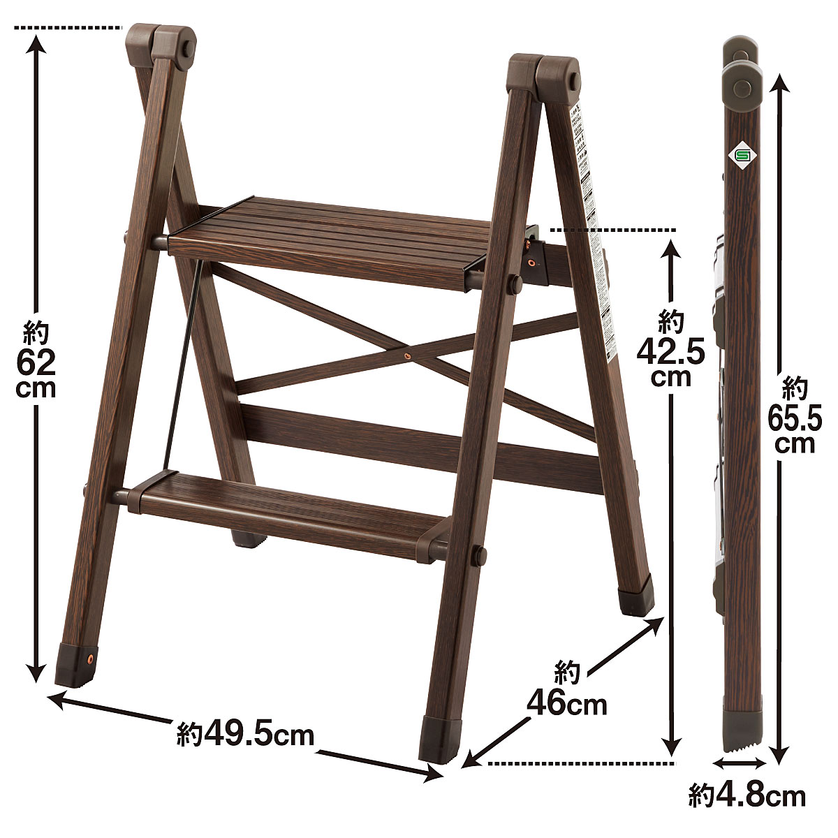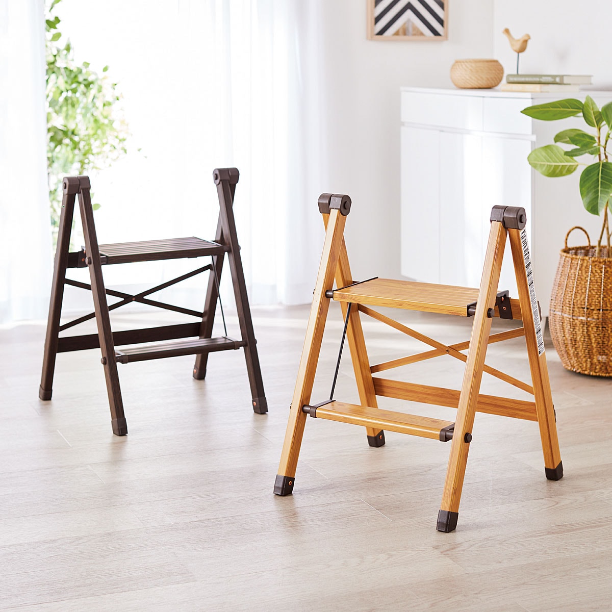 木目調でインテリア性抜群。薄くおりたためる脚立!