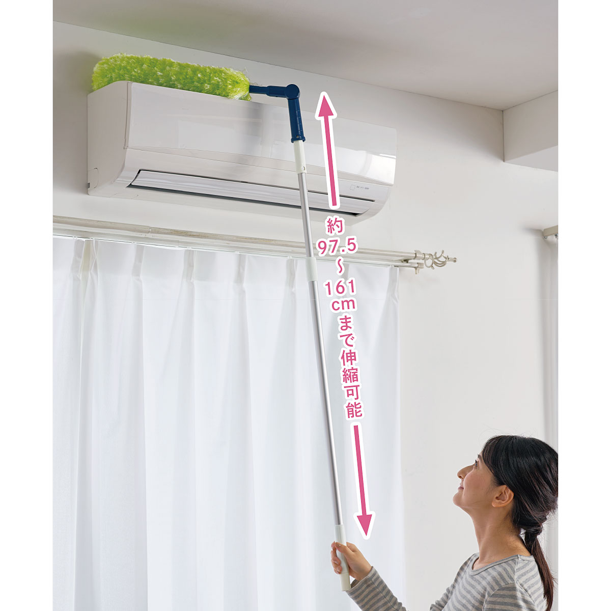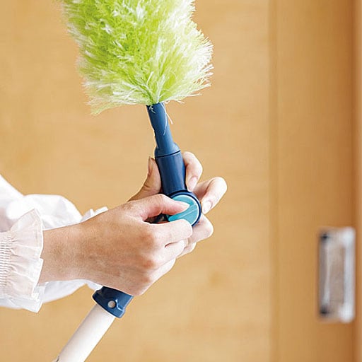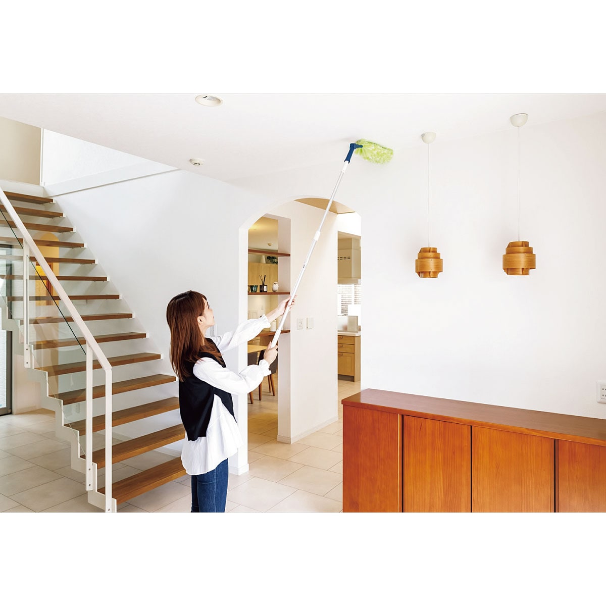 静電気で付着したホコリもしっかり落とせる!天井まで届く高所用とハンディタイプの2サイズ。ハンドルは伸縮も角度調整も可能なので便利です。