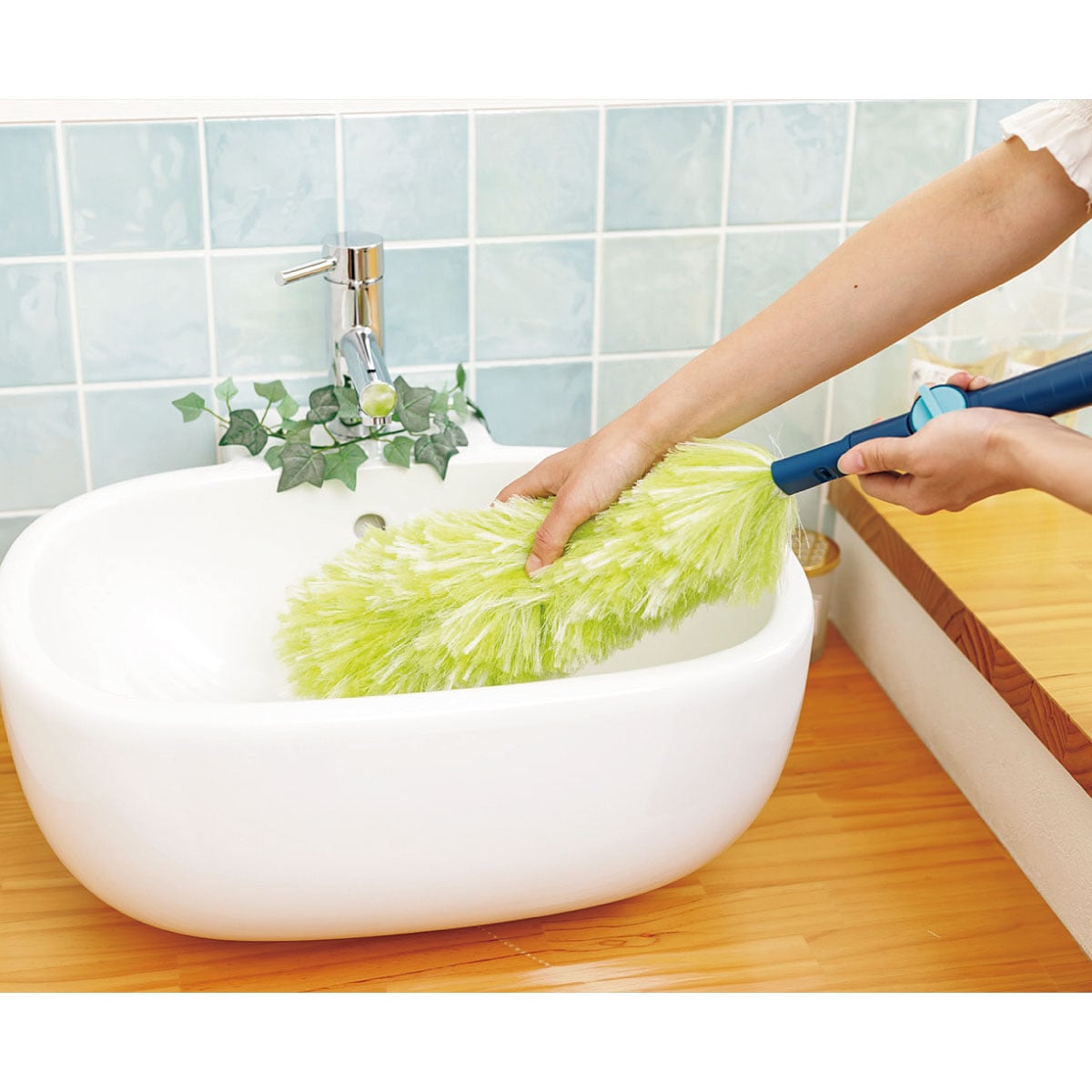 汚れたらモップ部分を水洗いOK。清潔に使えます。