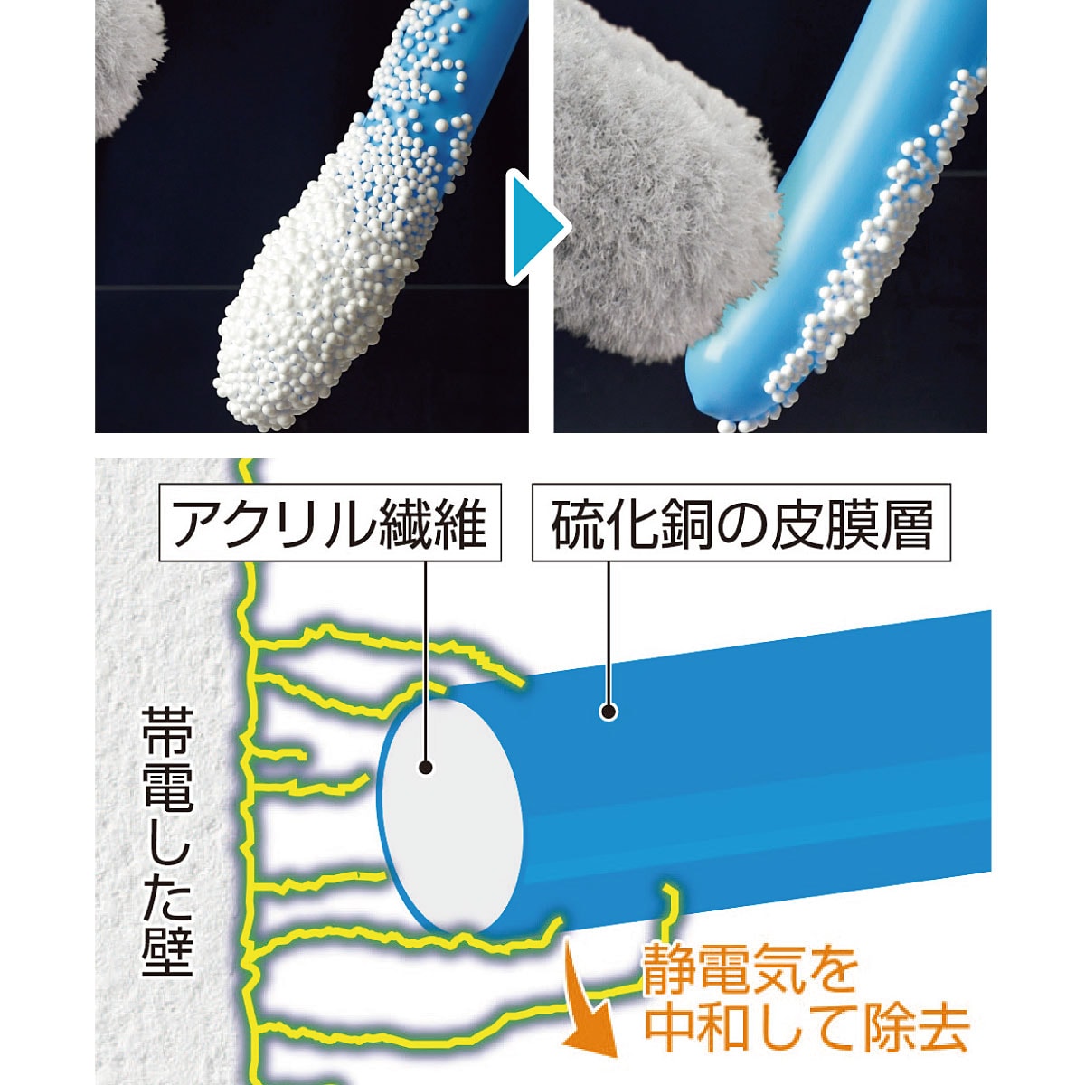 アクリル繊維を硫化銅の被膜で覆うことで、静電気を中和してホコリがつきにくい状態に。