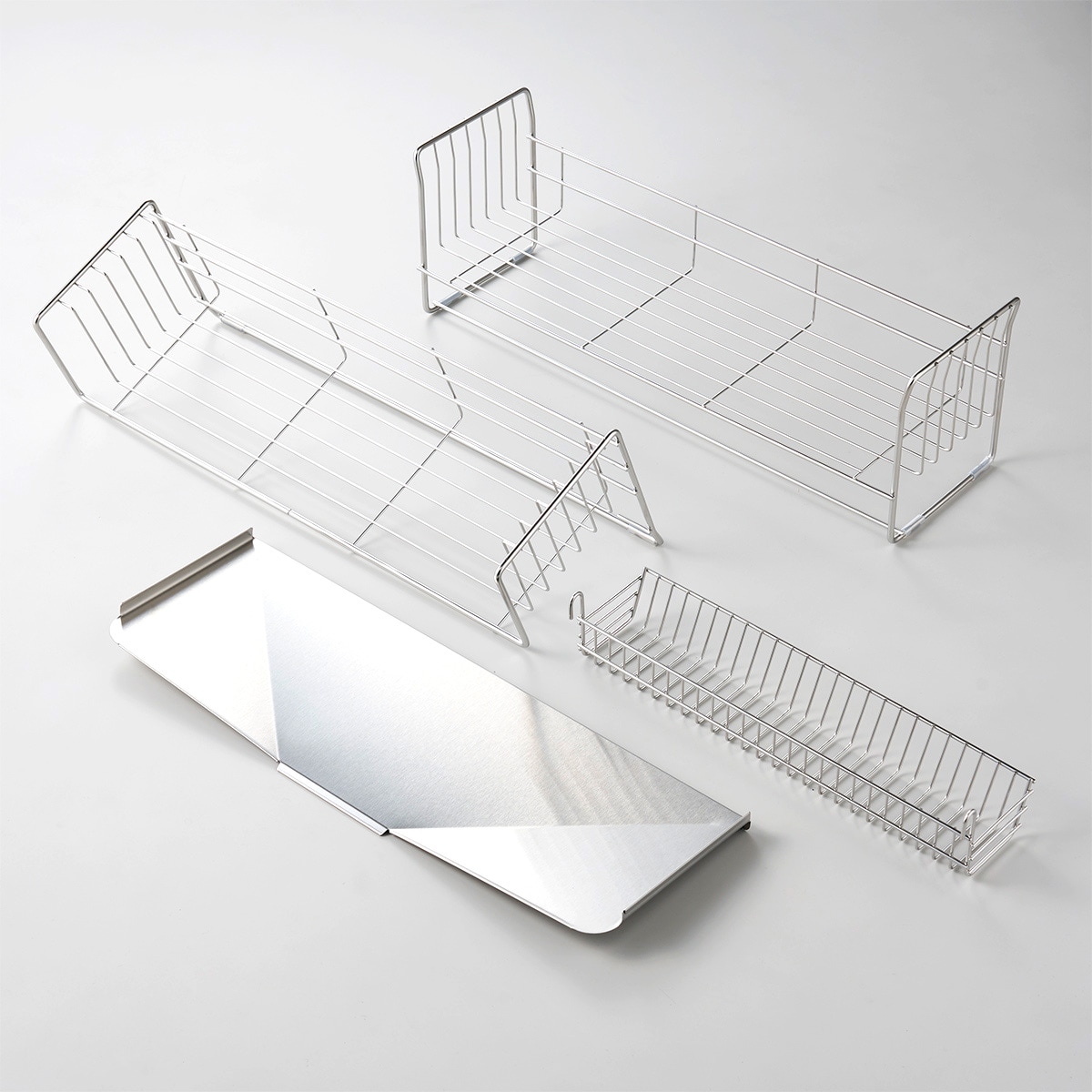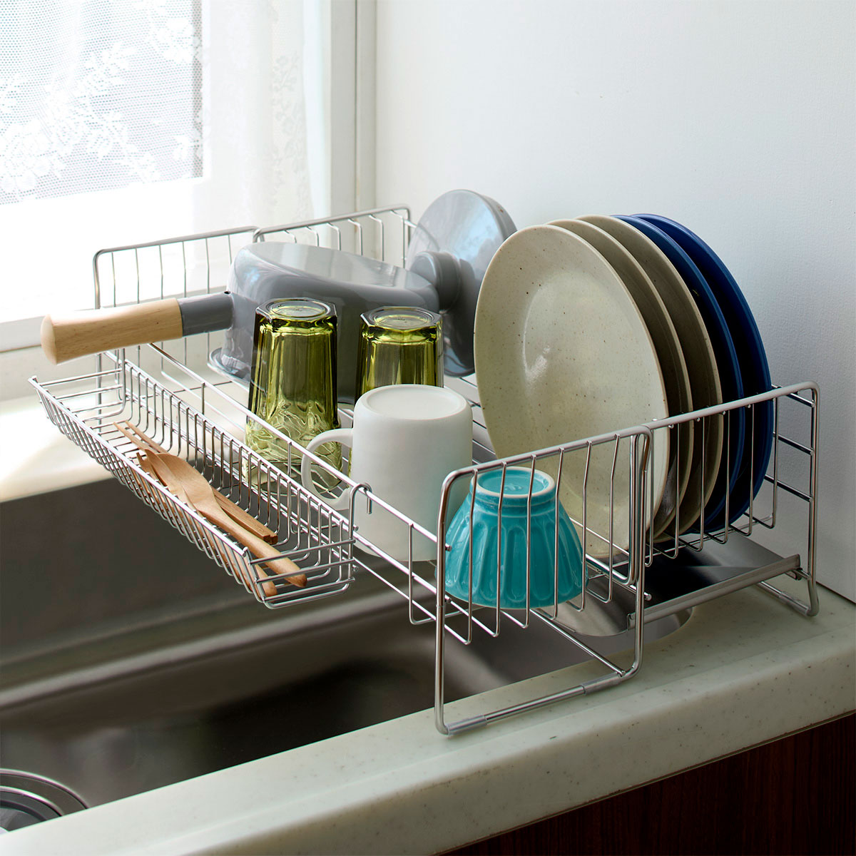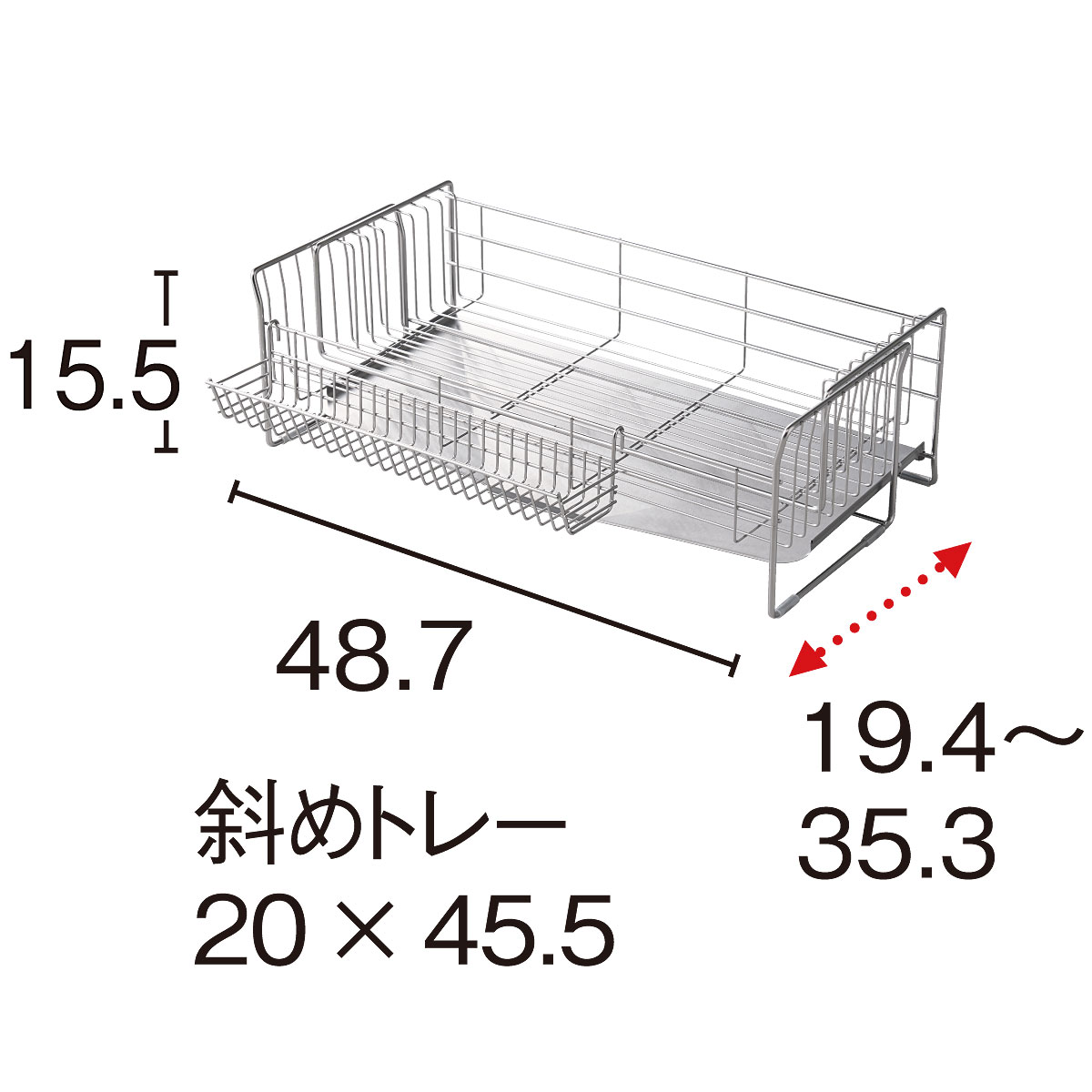 ●[本体・トレイ・小物ポケット]ステンレス [クッションチューブ]シリコーンゴム■[サイズ(約cm)]トレイ/A:15.9×45.5×3 B:15.9×55.5×3 C:20×45.5×3 D:20×55.5×3 小物ポケット(共通)/8.3×33×6.5■[重量(約kg)]A/1.43 B/1.62 C/1.58 D:1.8 ※26cmのお皿まで自立対応(形状によっては立たない場合がございます)●日本製【完成品】【小型別配送】※沖縄県や一部島しょ部など配送上の都合によりお届けできない地域がございます。