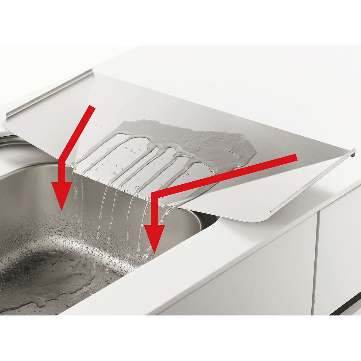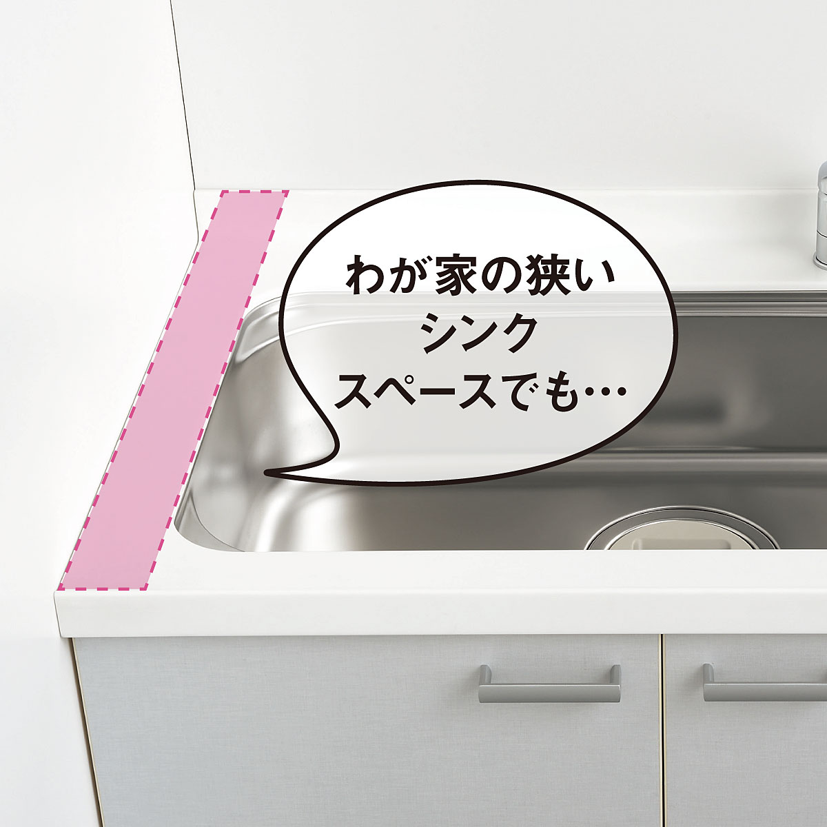 水が中央に集まりシンクまわりに水が漏れません。※水受け斜めトレーに伸縮機能はありません。
