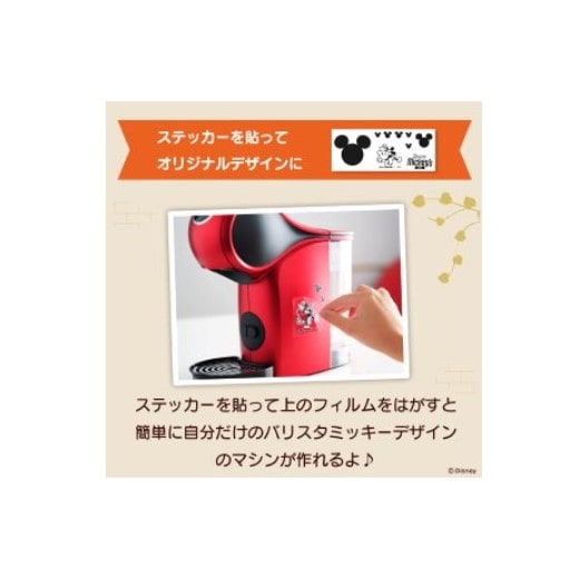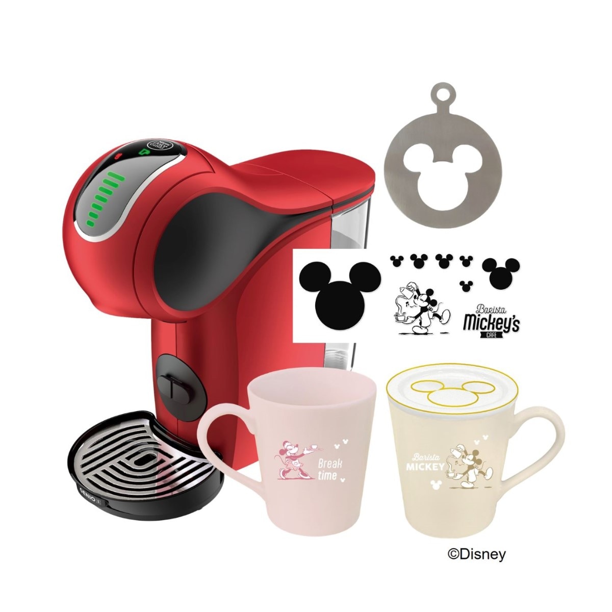 セット内容:ネスカフェドルチェグスト「ジェニオ エス タッチ」レッド(レッドメタル)×1台ミッキーデザインの各種アクセサリー(ペアマグカップ×1セット・コースター×1枚・ステンシルプレート×1枚・ステッカー×1セット)※カプセルは付属しません
