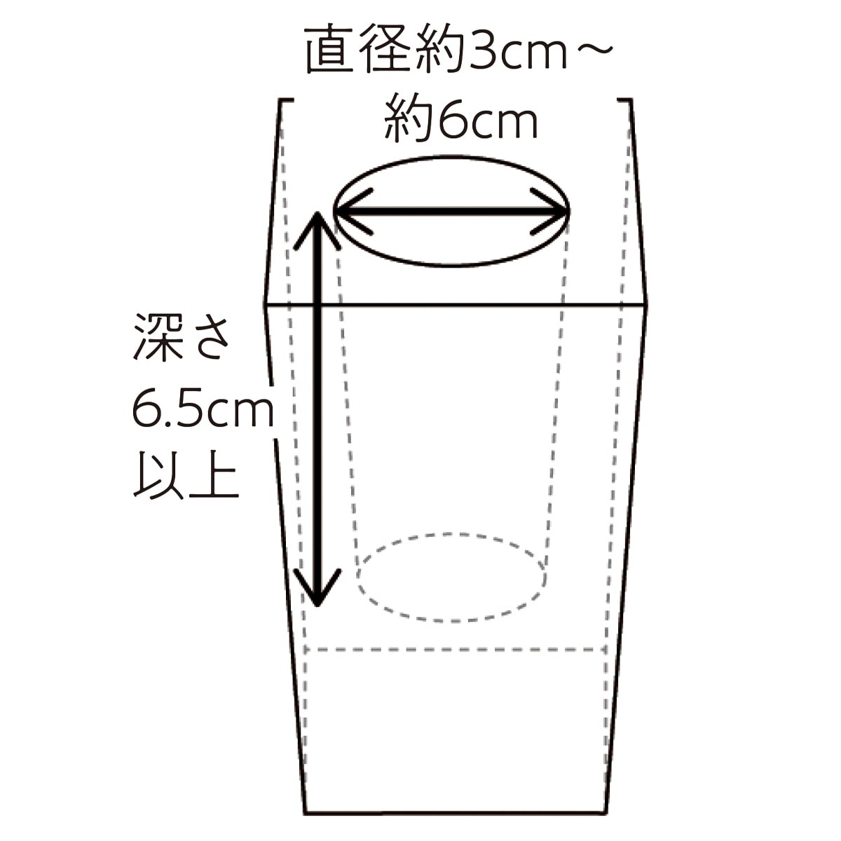 直径3cm~6cm深さ 6.5cm以上の花入に対応