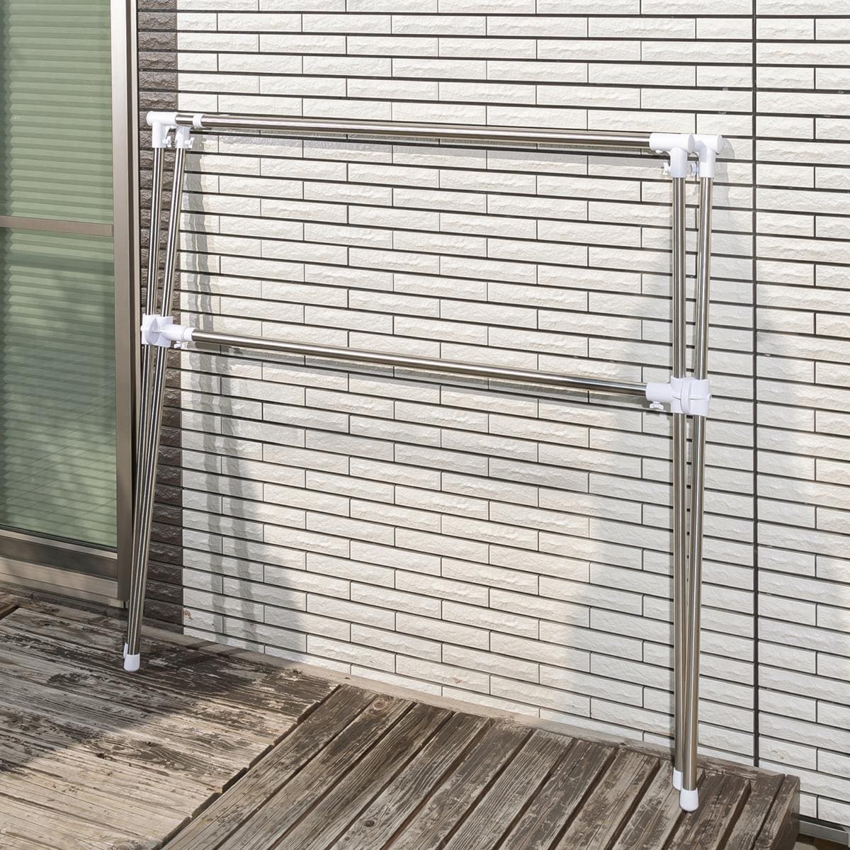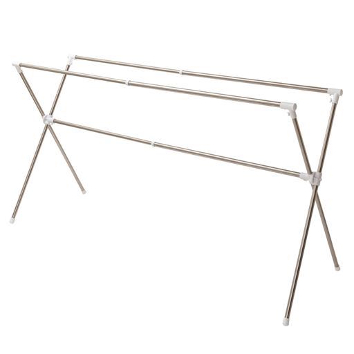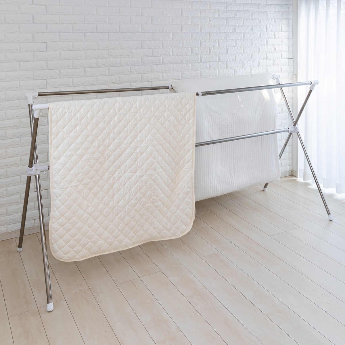 干す量に合わせて幅を自由に調整できるX型物干しです。シングルの布団を最大4枚干すことができます。ステンレス製でさびにくく、屋内・屋外兼用使用可能。軽量で持ち運びやすいのも嬉しいポイント。畳んだときの厚みは約8cmなので、使わないときはスリムに収納できます。