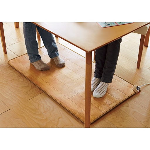 フローリングの床に違和感なく敷ける木目調の薄型ホットテーブルマット。冷えやすい足元をぽかぽかと暖めます。これなら冷え込む日もゆったり食事を楽しめそう☆