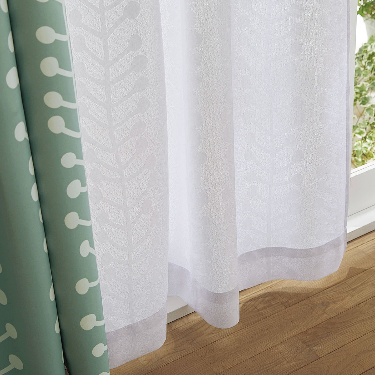 ミラーレースカーテン(北欧風柄・はっ水)