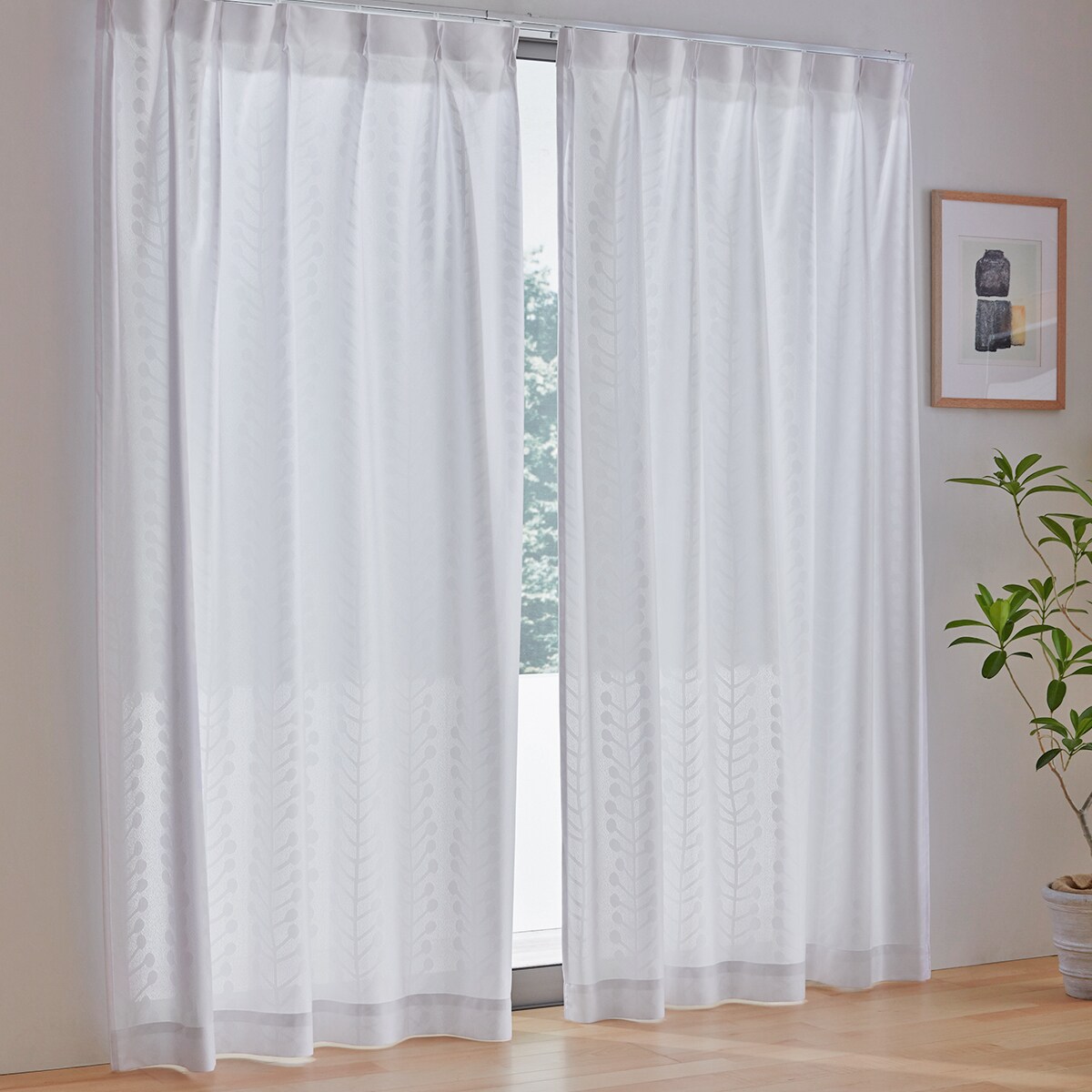 ■ポリエステル100% ●アジャスターフック付き(Aフック) ●日本製▼幅130・150・200cmのサイズについては、継目(はぎ合わせ)があります。【はっ水】【目隠し効果】(昼のみOK)【UVカット率:約92%】 【遮熱・保温】 【透け感の目安:やや透けにくい】 【明るさの目安:ふつう】 【生地厚の目安:ふつう】 【洗濯機OK(ネット使用)】【小型別配送】 【返品・交換不可】※受注生産商品のため、ご注文後のキャンセルは承れません。不良品のみ返品・交換をお受けいたします。※一般のレースカーテンに比べて、内側から外が見えにくくなります。部屋の中が見えにくくなる効果は、夜間照明などで部屋の中が明るい場合は発揮されません。※当社のUVカット機能表示は、公的機関によって検査された紫外線遮蔽率70%以上の商品に表示しています。UVカット率が高く目隠し効果の高いレースカーテンは、通常のレースカーテンと比較してお部屋が若干暗くなります。※沖縄県や一部島しょ部など配送上の都合によりお届けできない地域がございます。