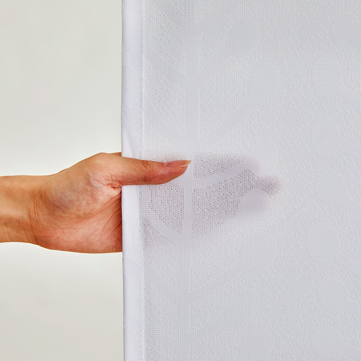 オフホワイト昼間の視線をガードする、ミラーレースカーテンです。