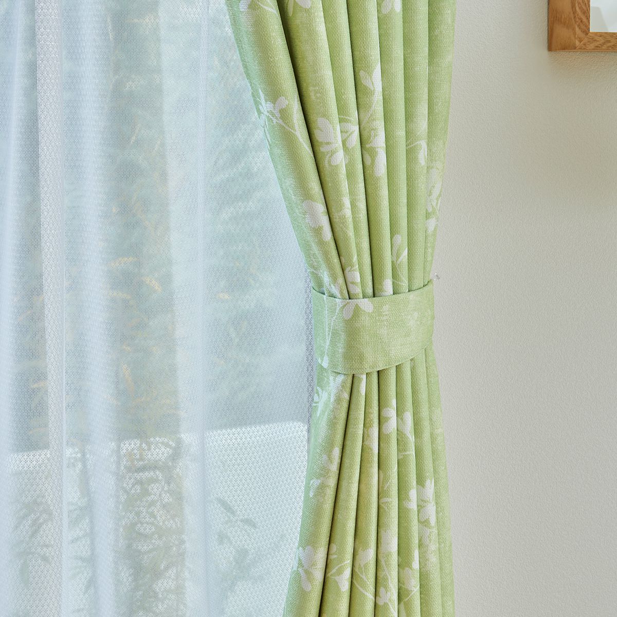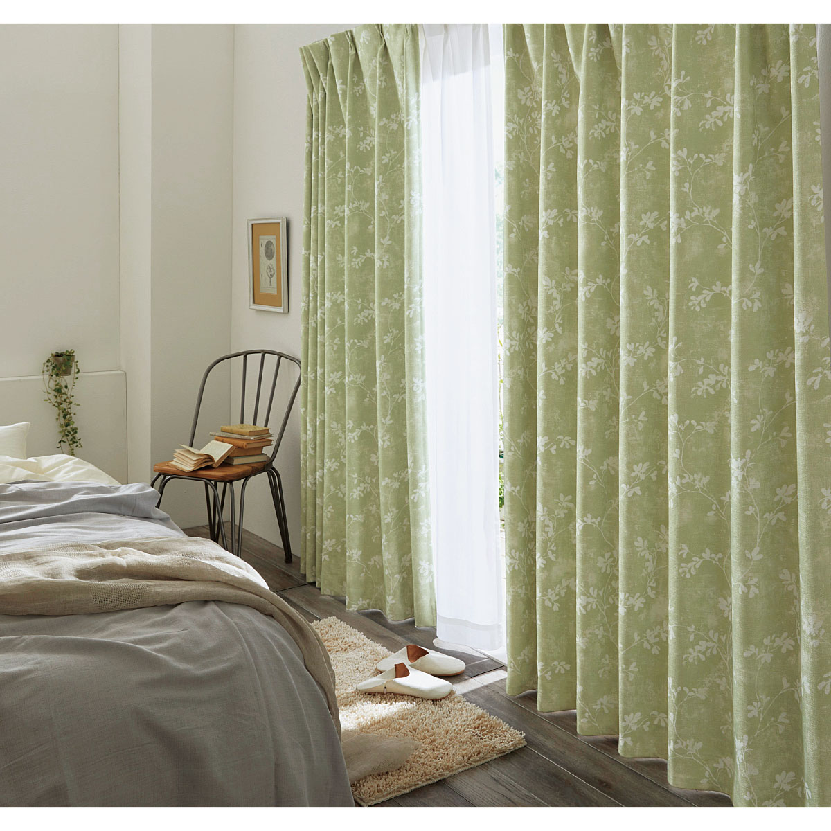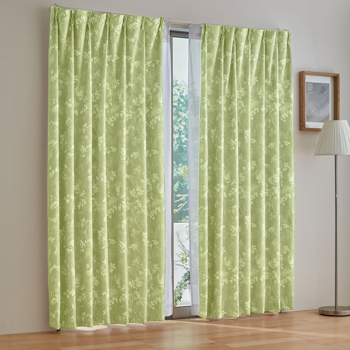 グリーン外からの音や光をしっかりガード。シャビーリーフ柄の遮音1級遮光カーテンです。