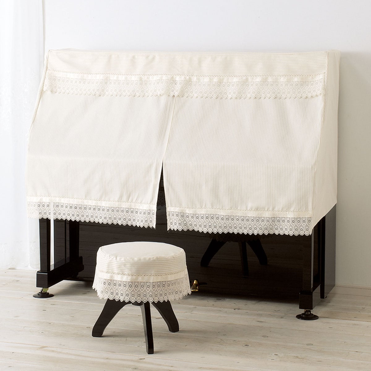 アイボリーアップライトピアノとチェアを汚れやホコリから守ります。